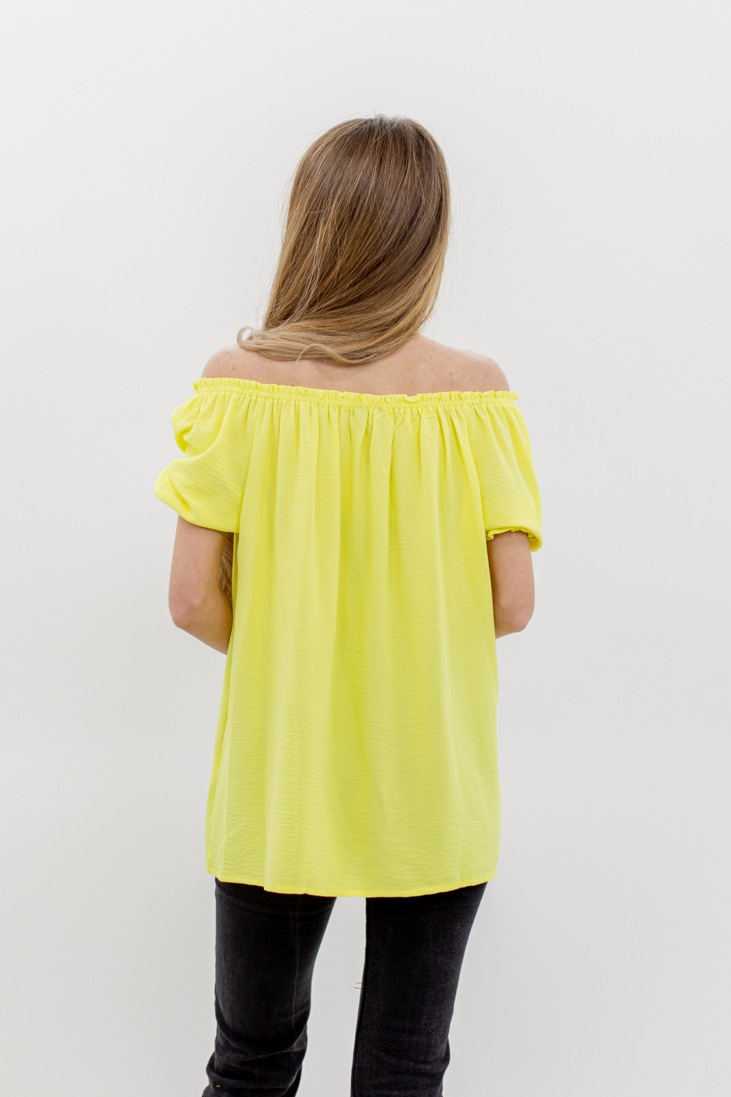 • Decolteul rotund cu elastic permite purtarea acestei bluze fie pe umeri, fie la baza gâtului, oferindu-ți opțiuni diferite pentru un look personalizat.