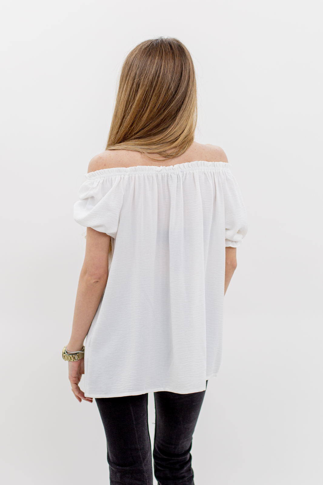 - Decolteul rotund cu elastic permite purtarea acestei bluze fie pe umeri, fie la baza gâtului, oferindu-ți opțiuni diferite pentru un look personalizat.