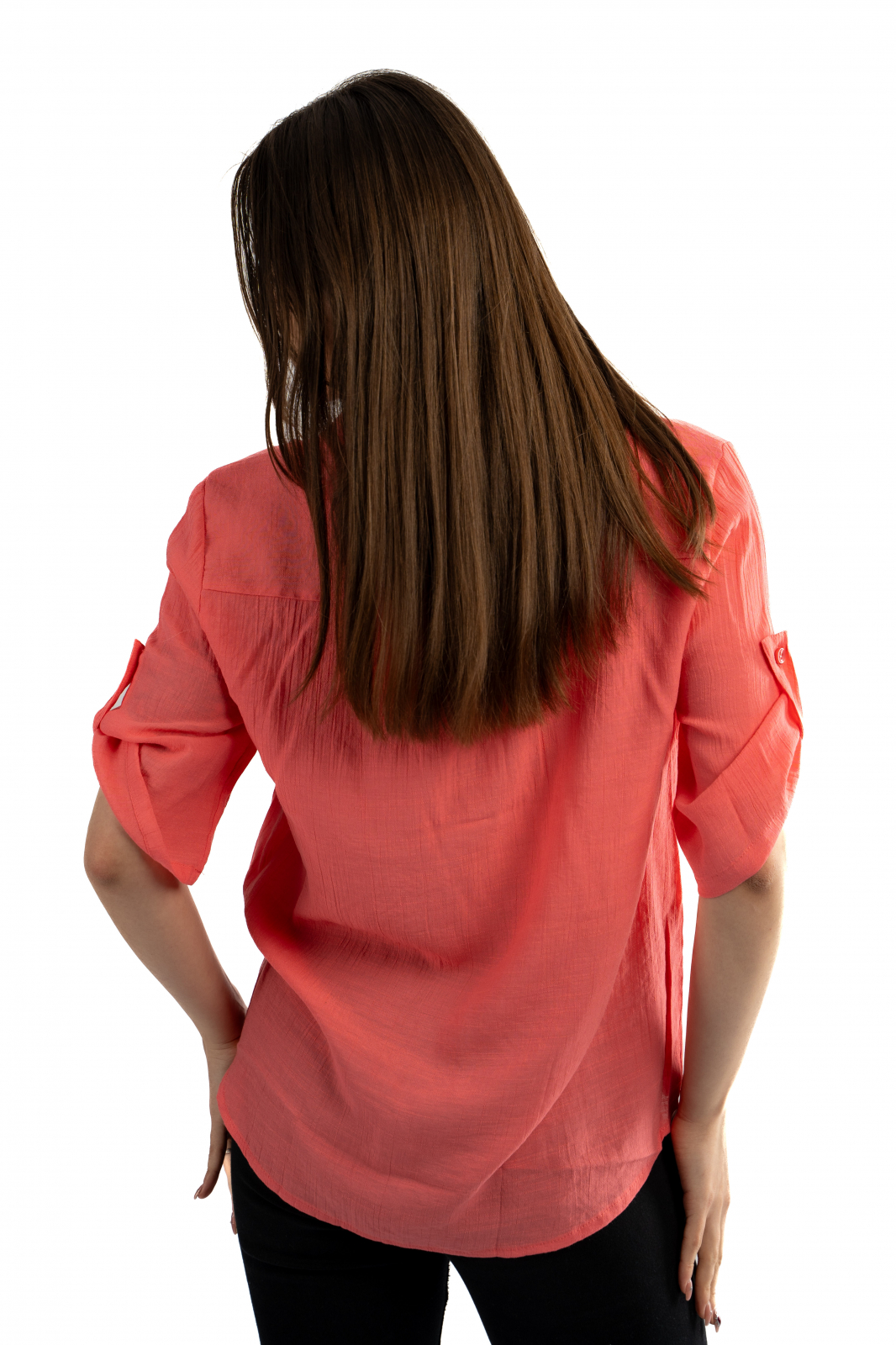 Confecționată dintr-un material ușor și vaporos, dintr-o combinație de poliester și bumbac, cămașa este perfectă pentru o ținută de zi cu zi, fiind ușor de asortat și de întreținut.