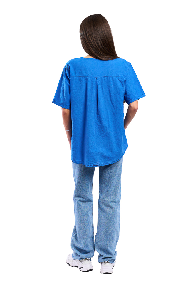 • Manecile scurte și decolteul în V adaugă un look sofisticat, în timp ce croiul lejer asigură confortul necesar întregii zile.