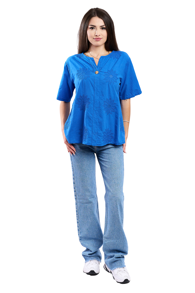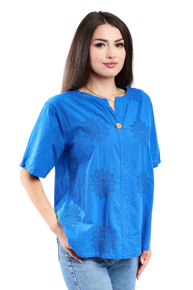 • Imprimeul uni brodat cu flori si nasture decorativ conferă un aspect curat și rafinat, perfect pentru orice ocazie casual sau de birou.