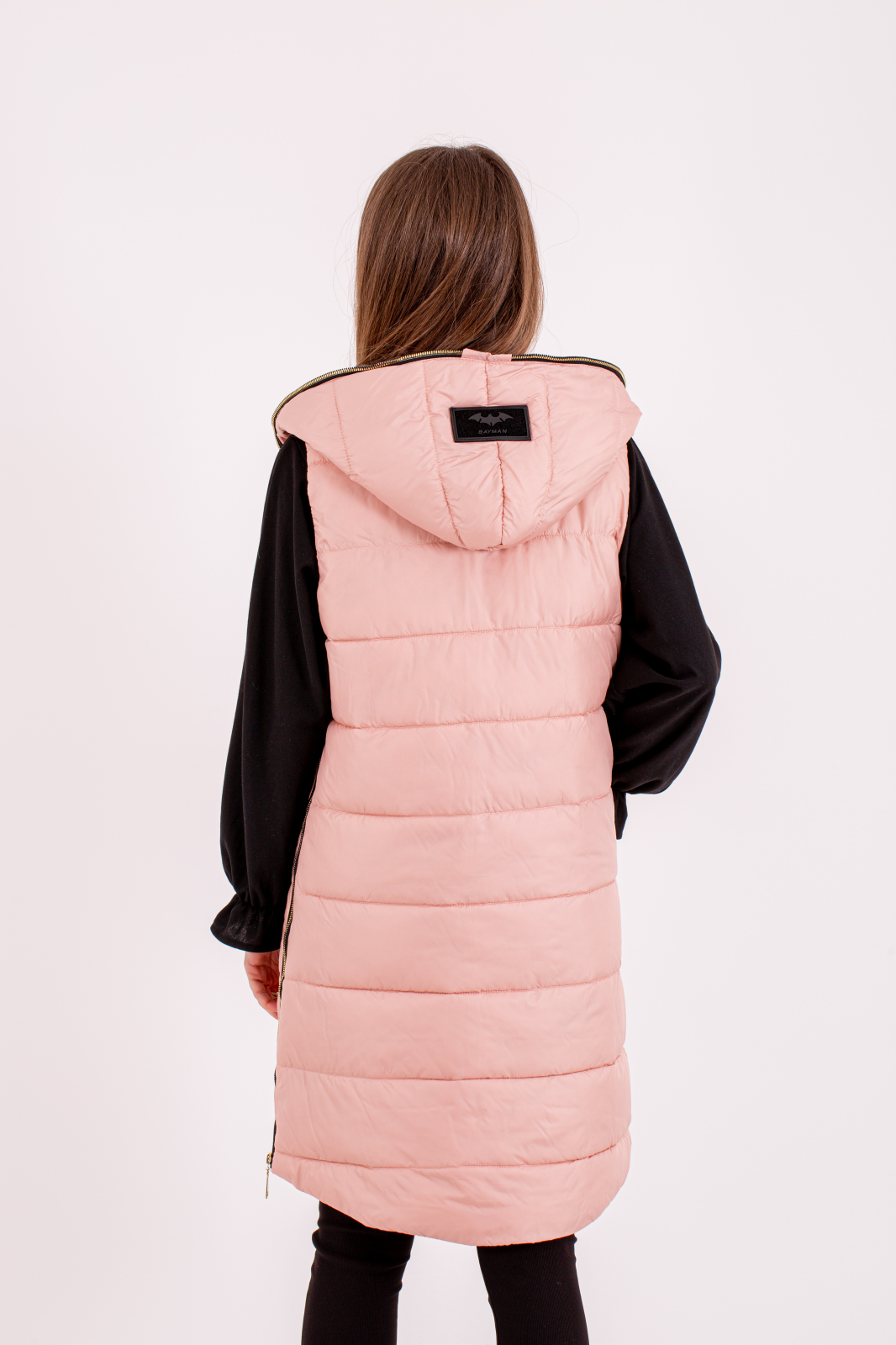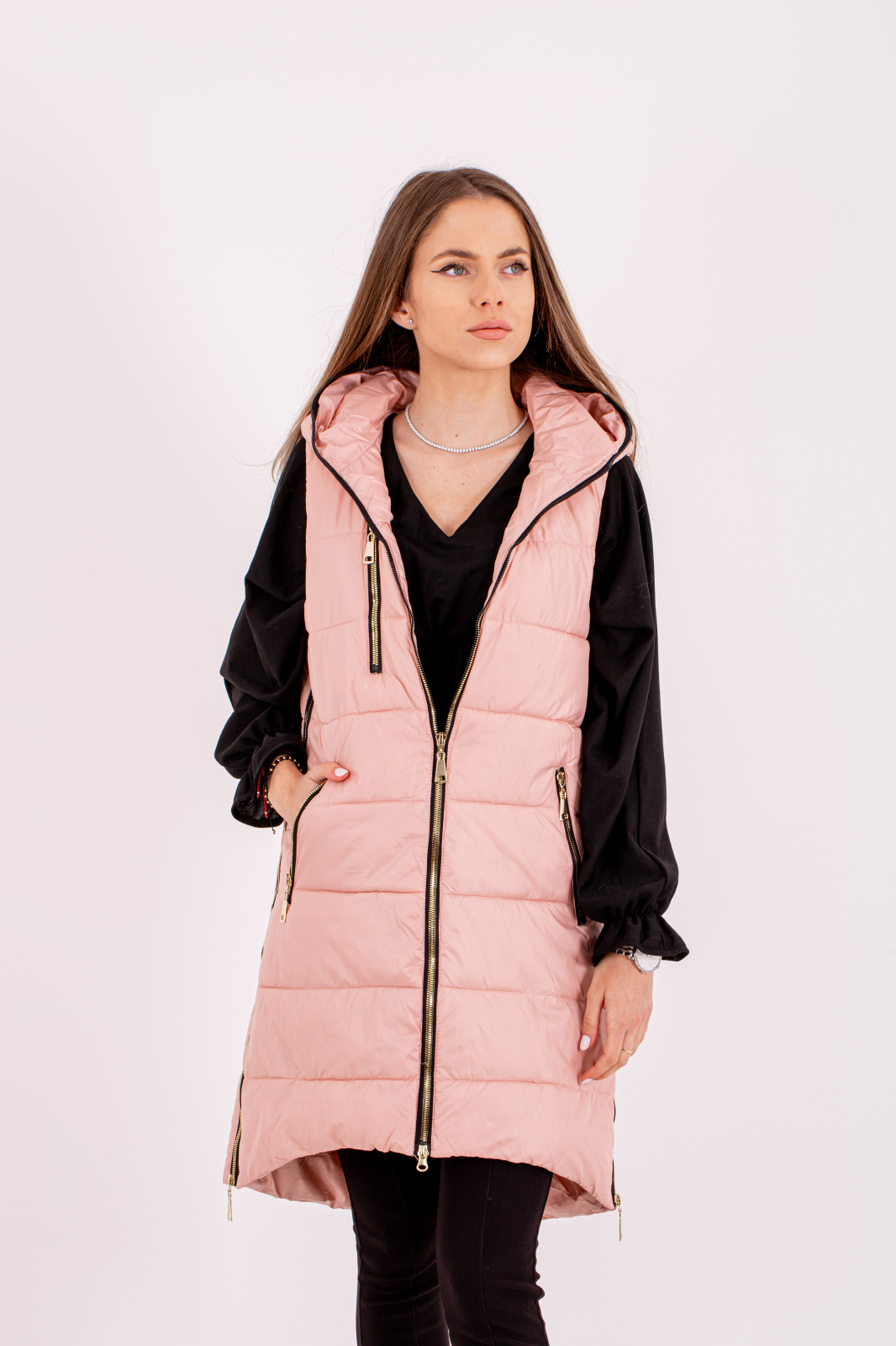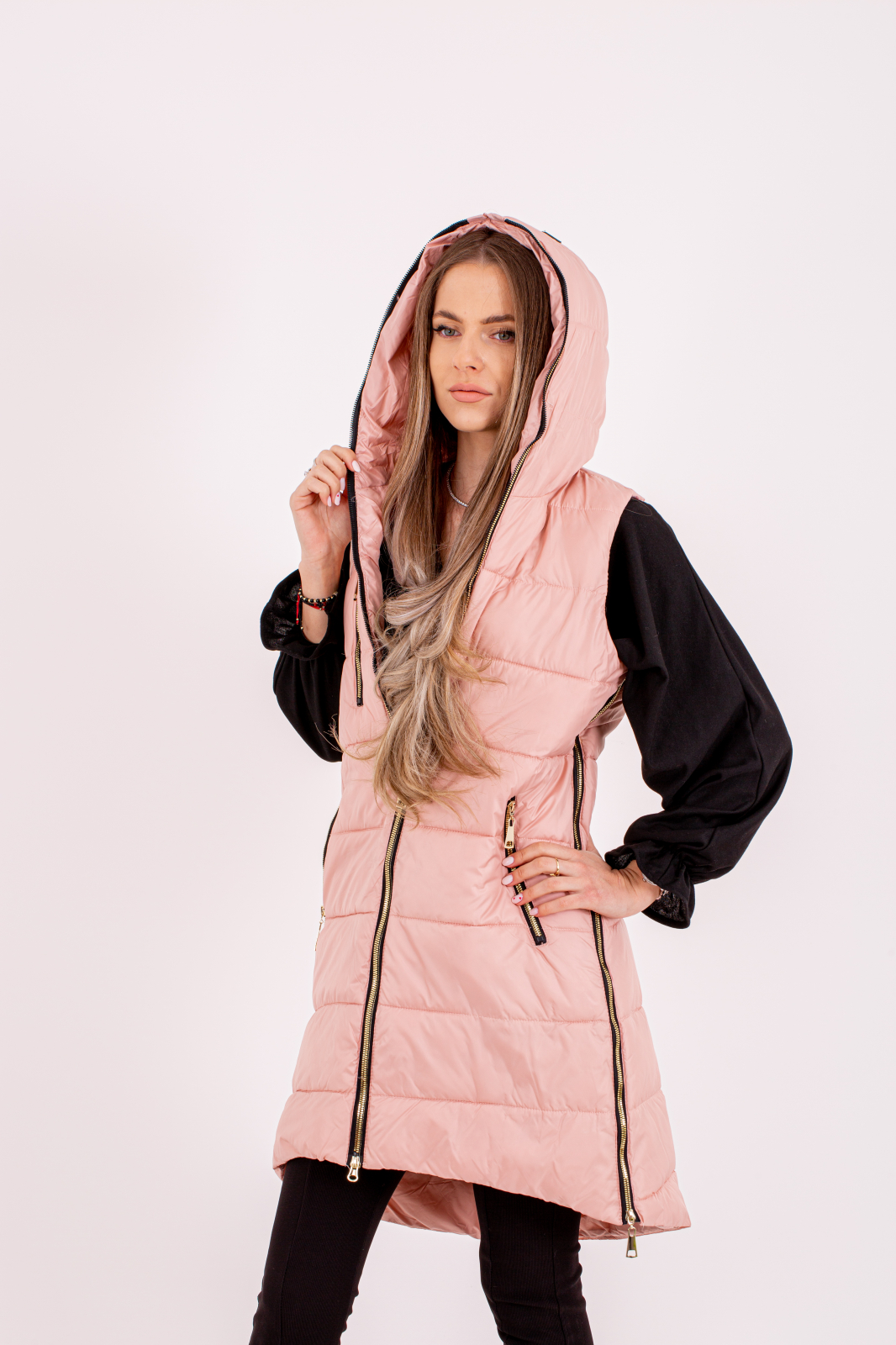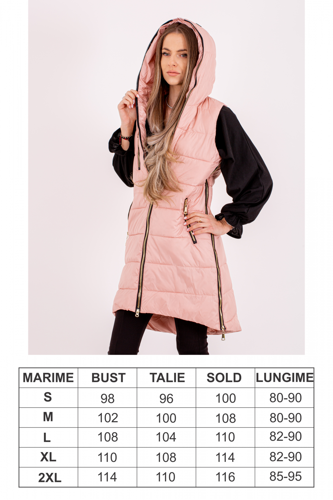 Vesta dama cu glugă de lungime medie este combinația perfectă între stil și confort.
