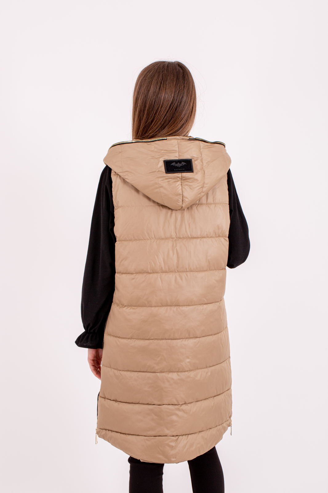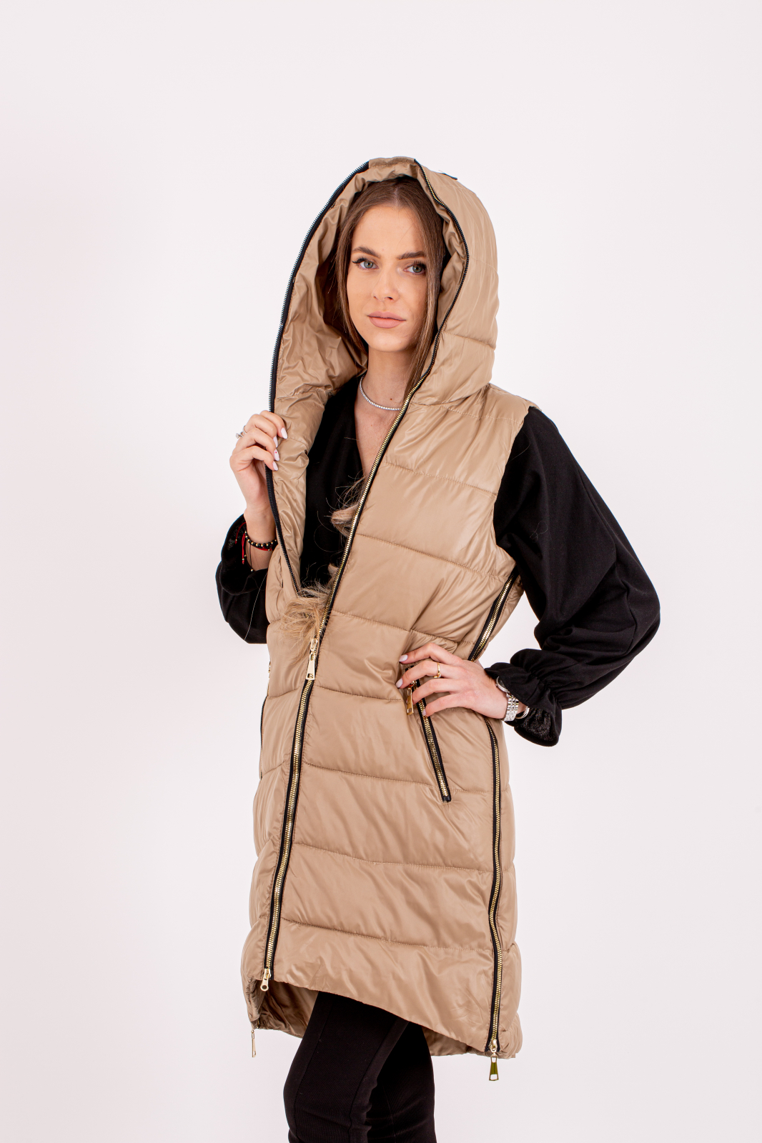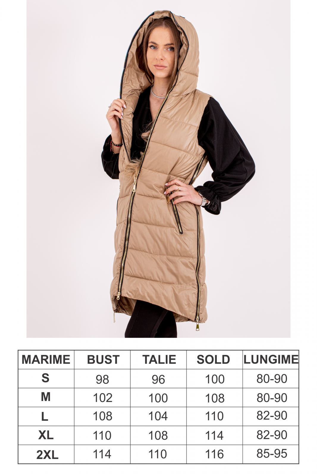 Vesta dama cu glugă de lungime medie este combinația perfectă între stil și confort.