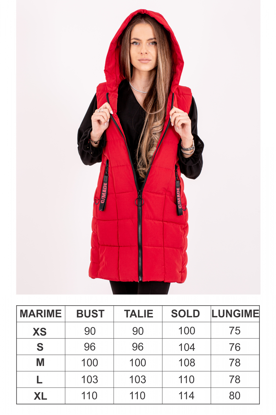 • Captușită cu vatelină ușoară, vesta oferă un plus de căldură și confort.