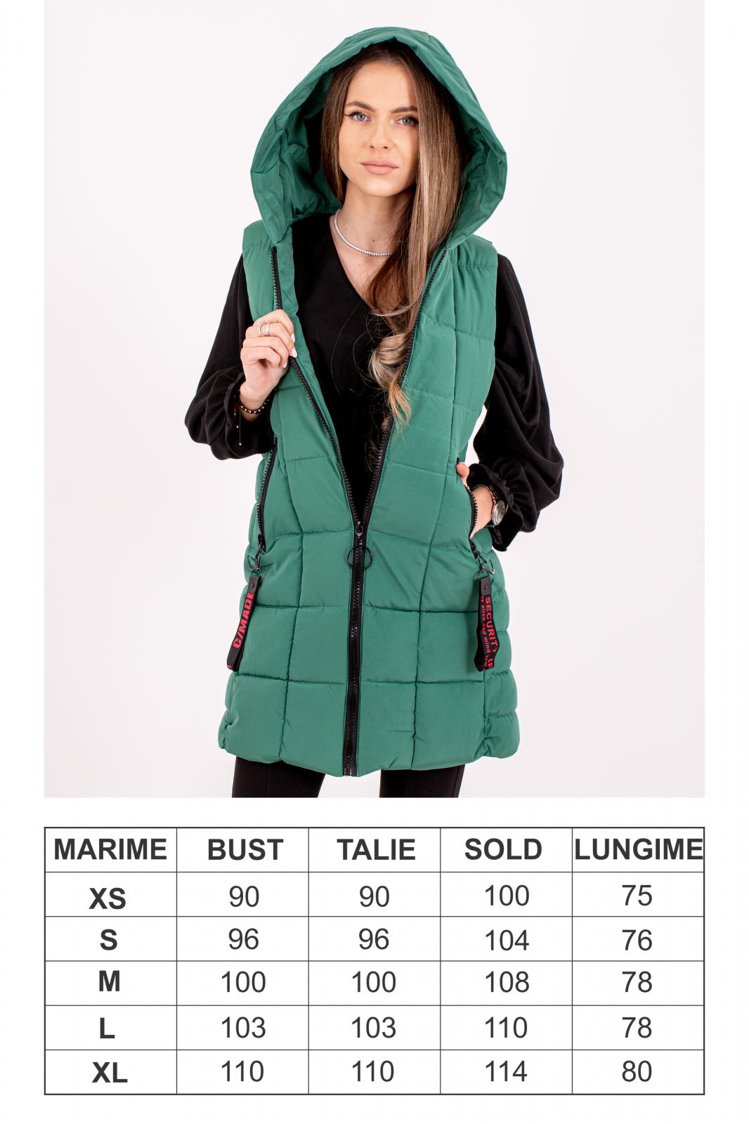 • Captușită cu vatelină ușoară, vesta oferă un plus de căldură și confort.