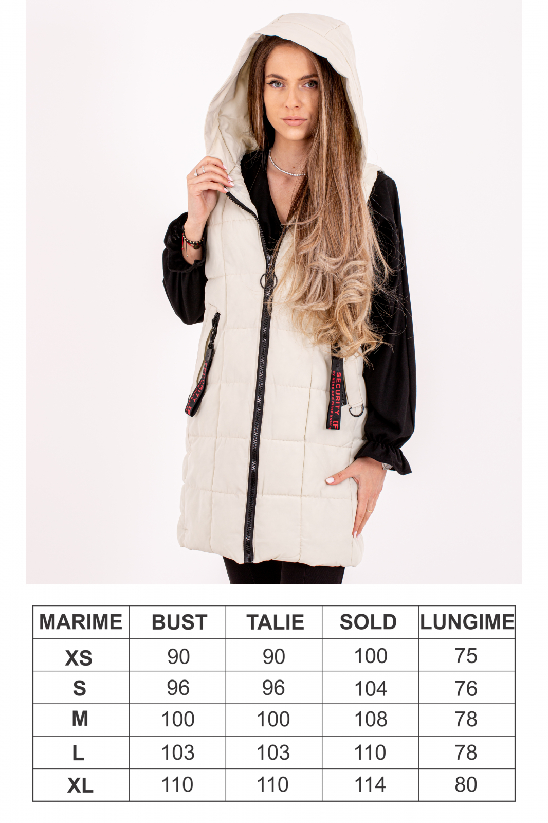 • Captușită cu vatelină ușoară, vesta oferă un plus de căldură și confort.