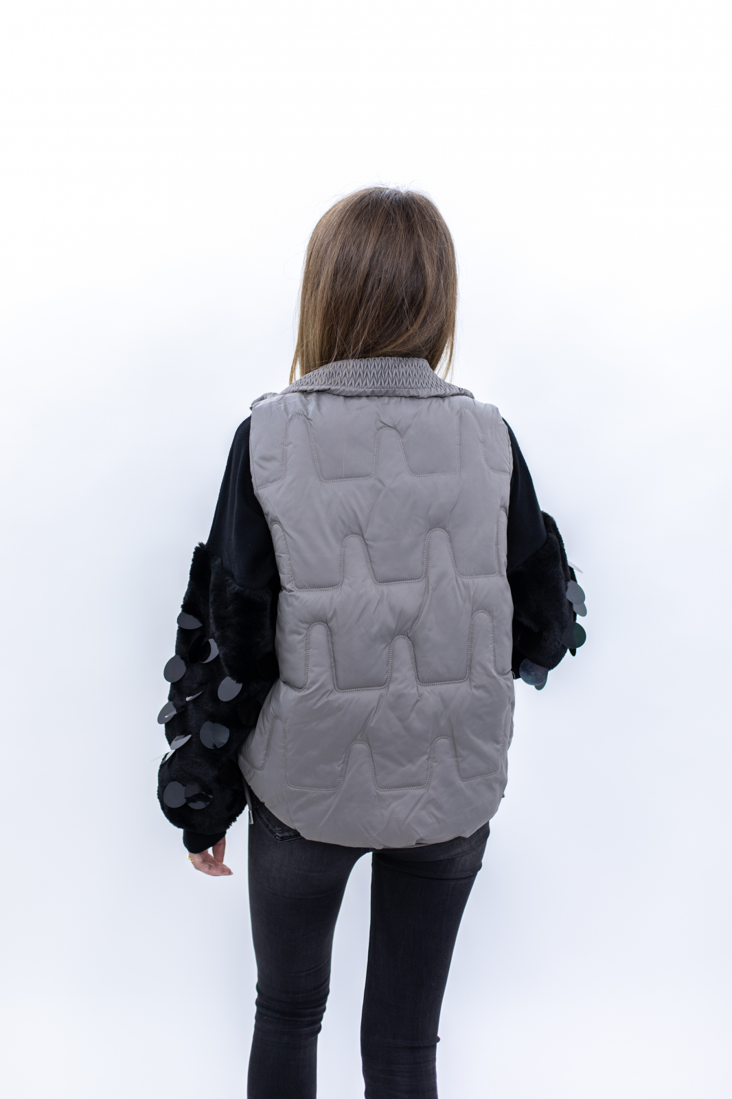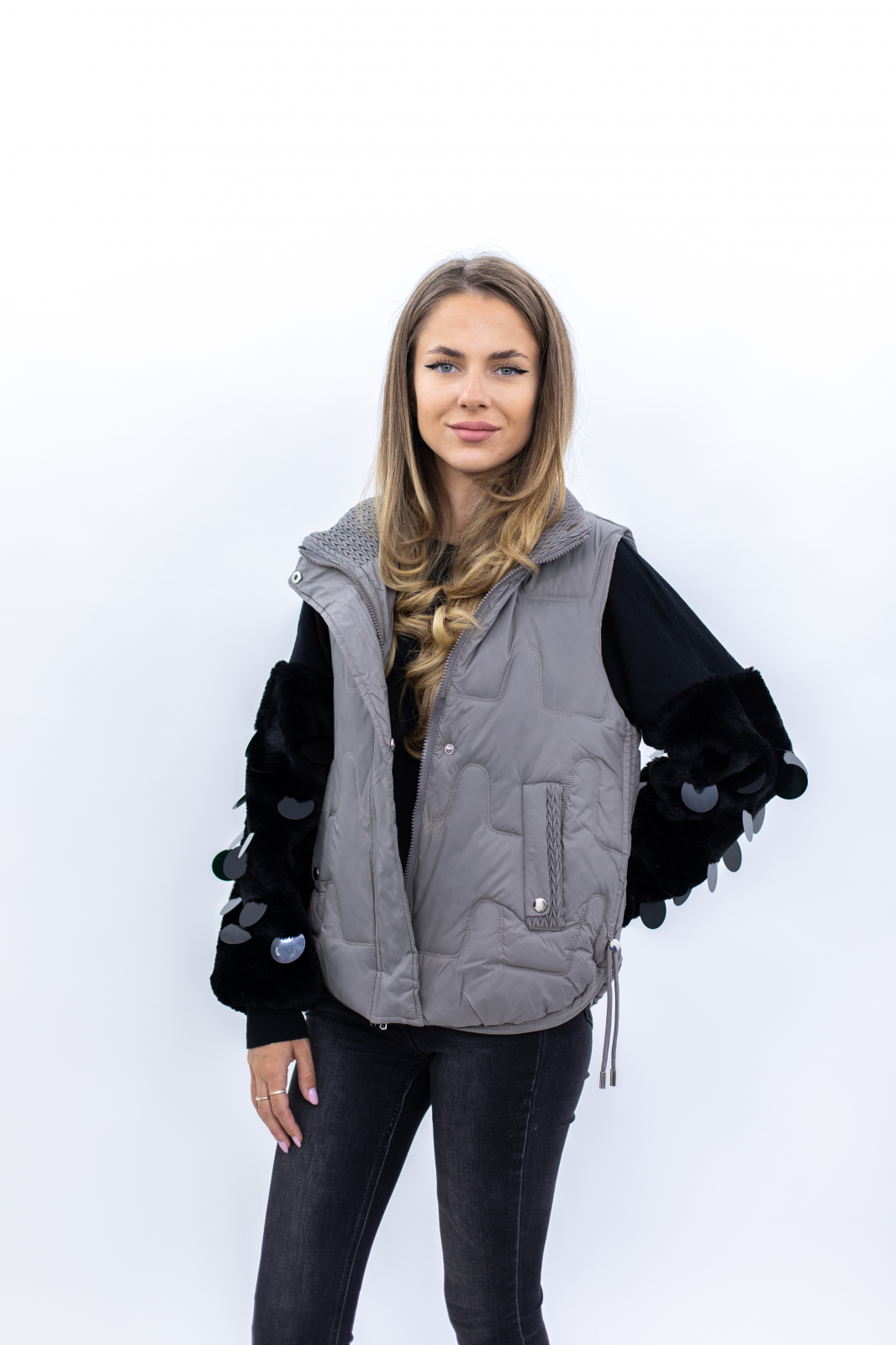 Această vesta modernă și confortabilă se închide cu fermoar și capse, oferindu-ți siguranță și un look impecabil, fiind soluția ideală pentru sezonul rece!