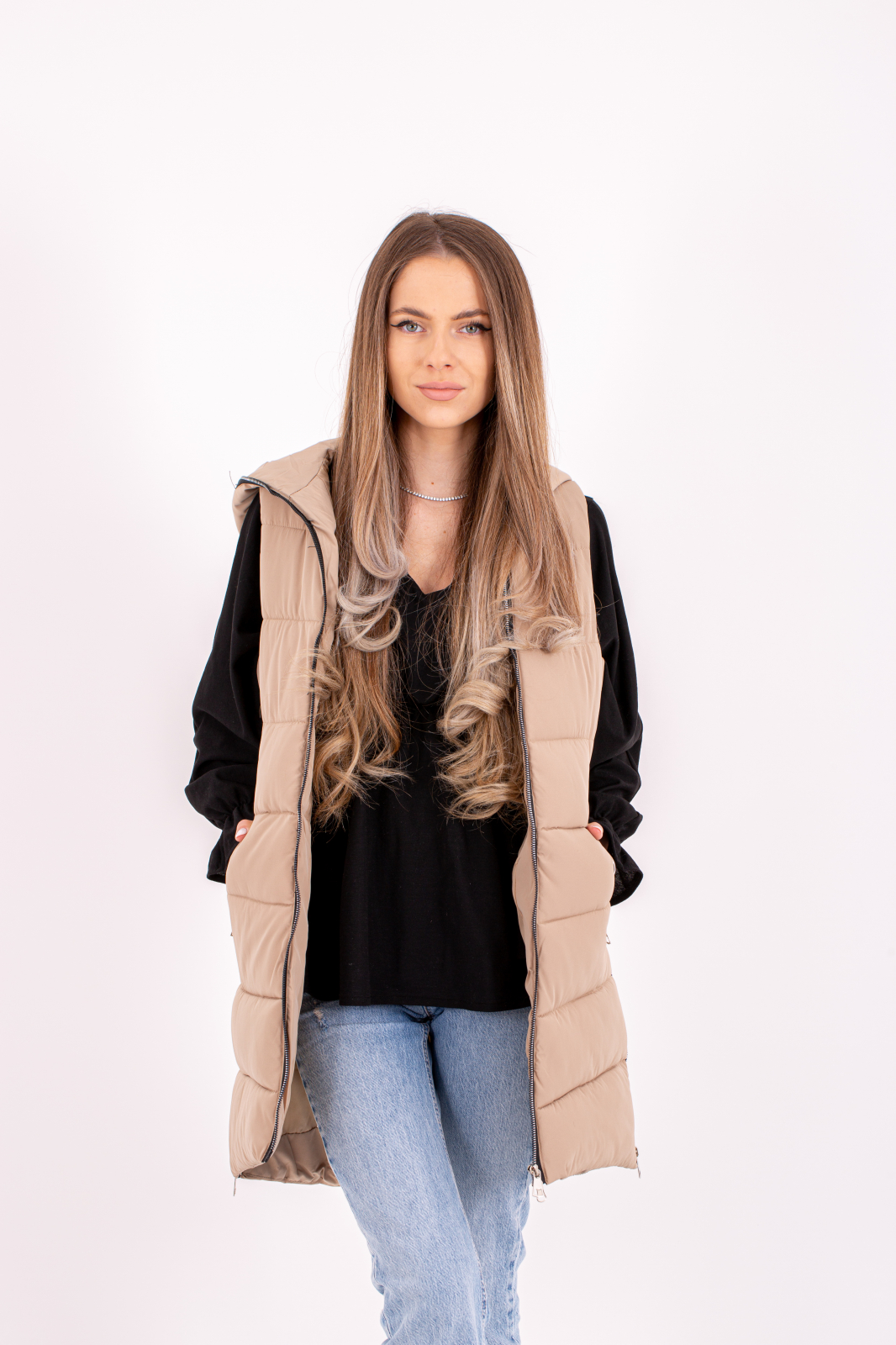 Vesta dama cu gluga 801 este alegerea ideală pentru un look modern și funcțional fiind perfectă pentru zilele răcoroase din sezonul rece