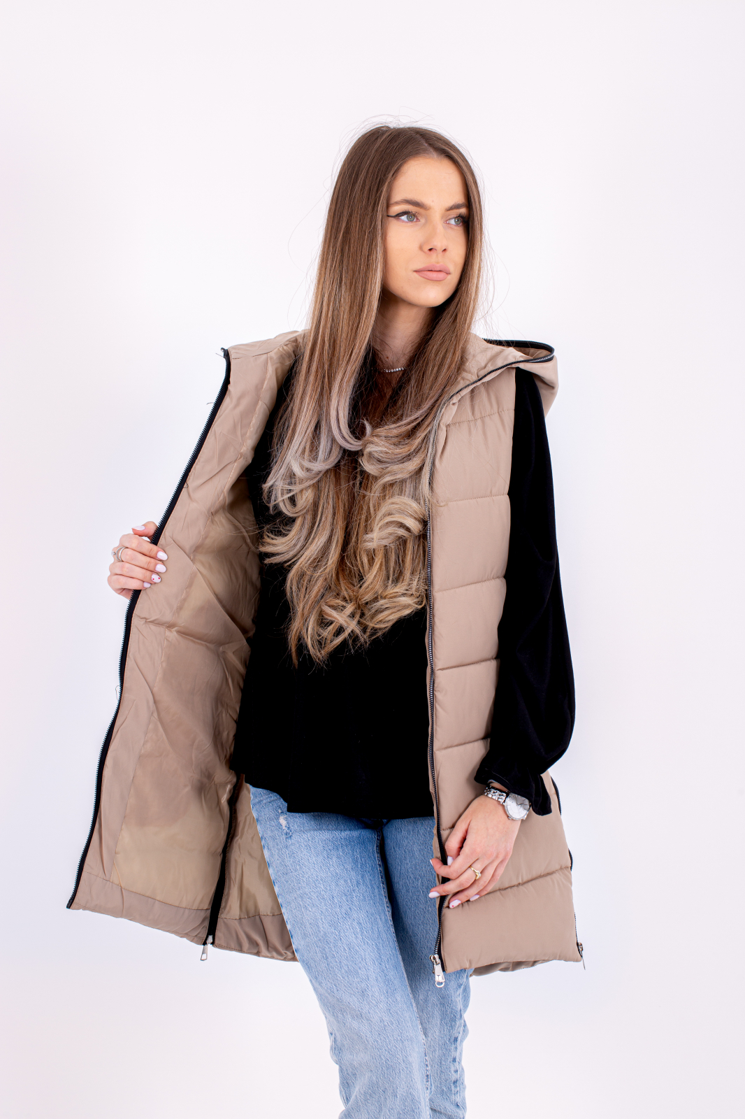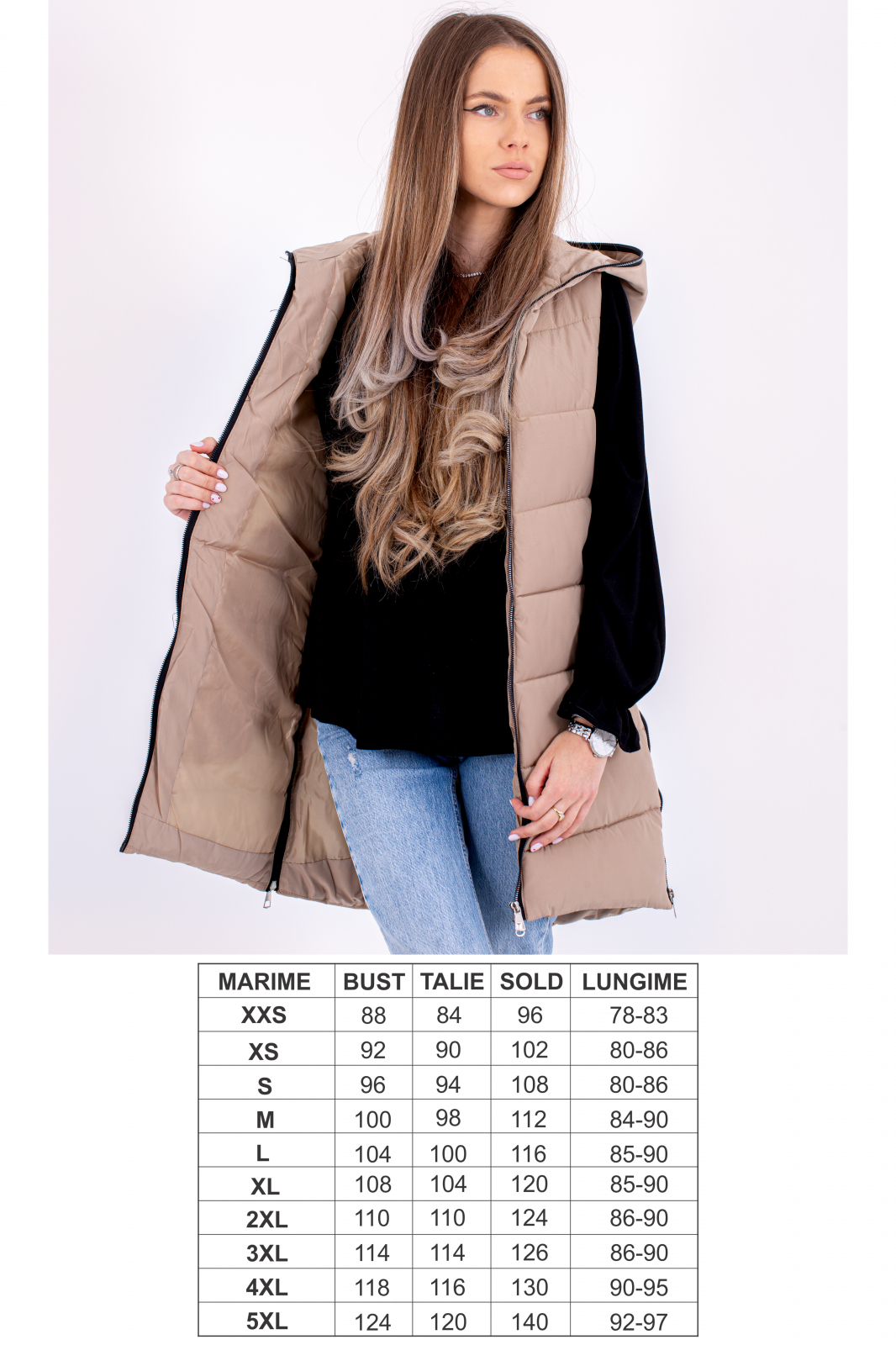 • Vesta dama cu gluga 801 este alegerea ideală pentru un look modern și funcțional.