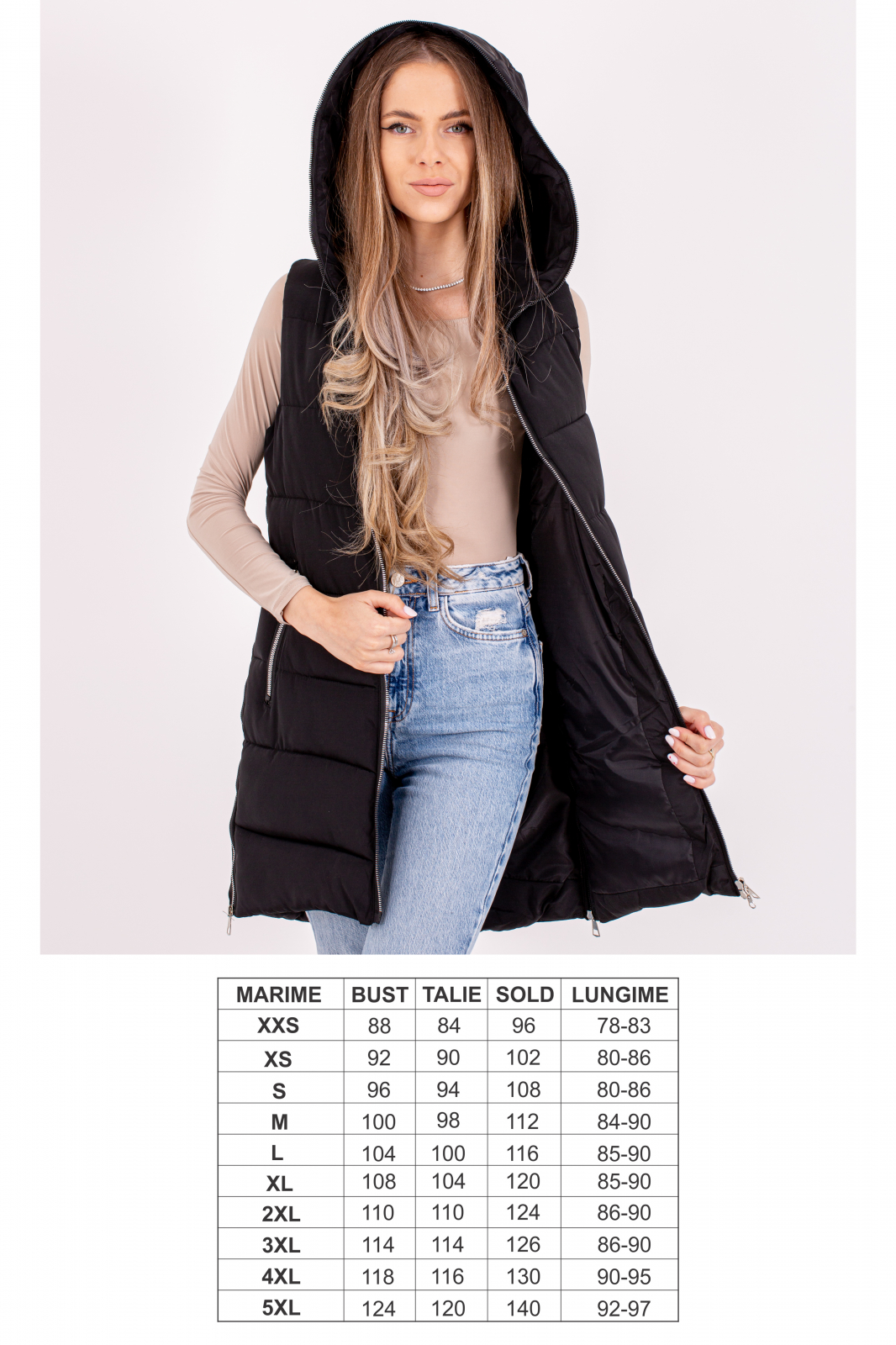 Vesta dama cu gluga 801 este alegerea ideală pentru un look modern și funcțional fiind perfectă pentru zilele răcoroase din sezonul rece
