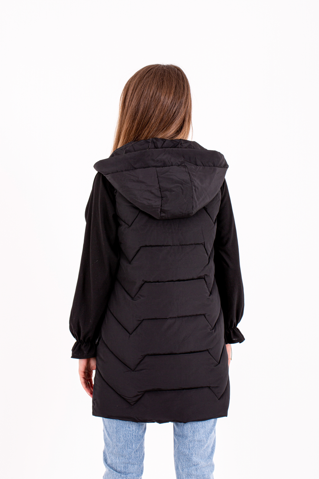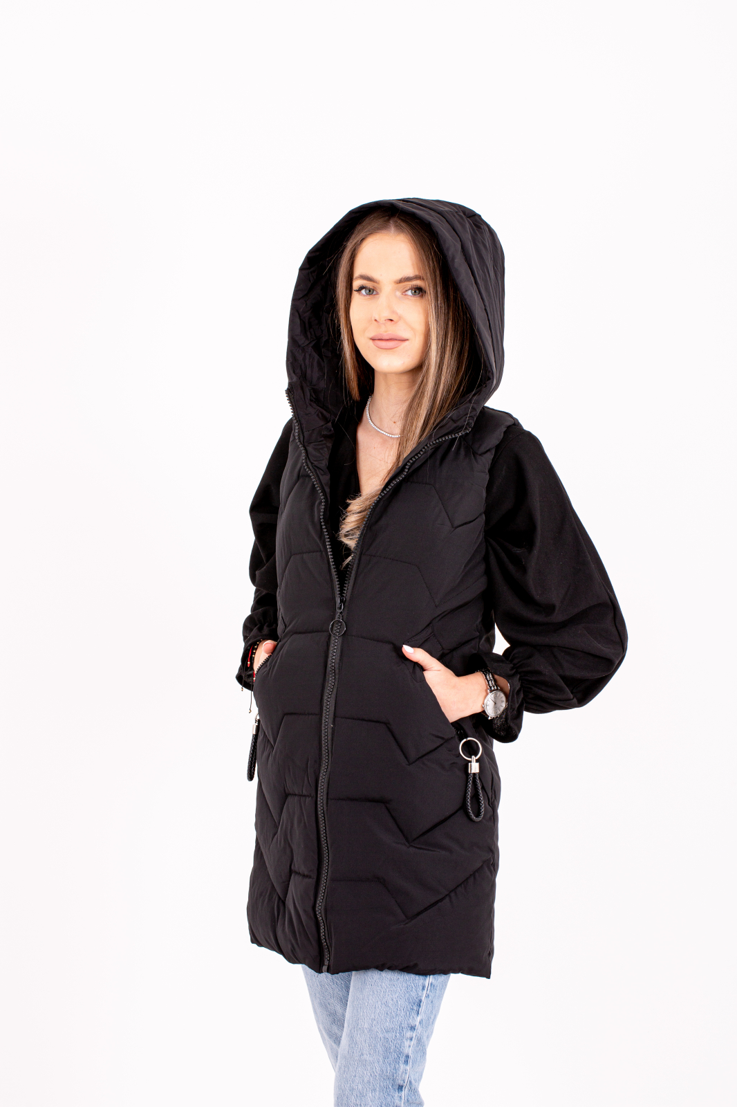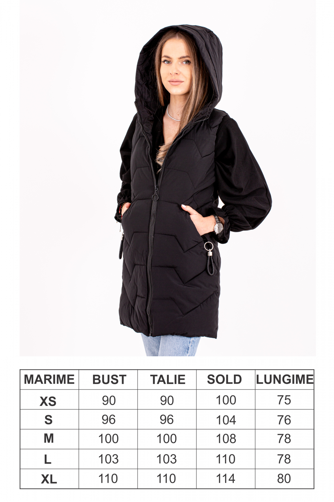 Vesta dama lungă cu glugă 808 îmbină confortul cu un design modern și practic.