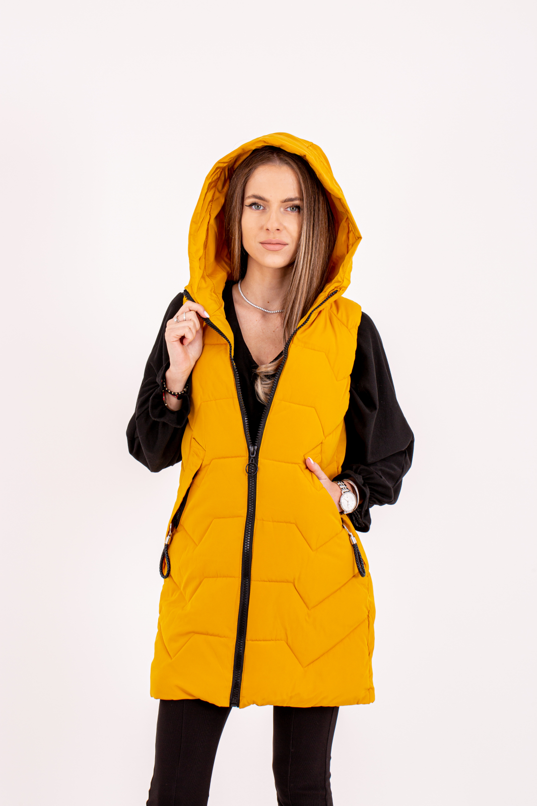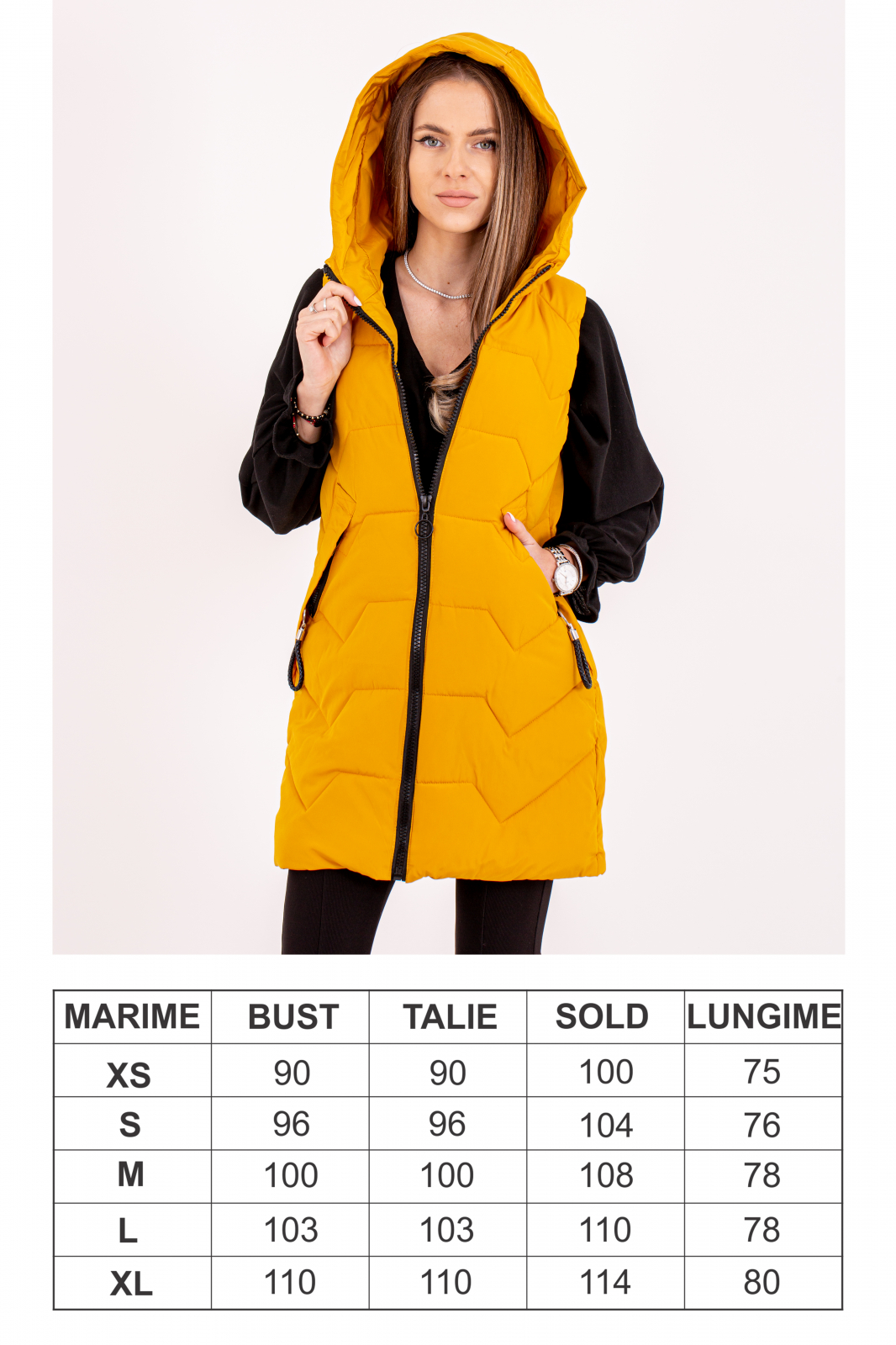 Vesta dama lungă cu glugă808 îmbină confortul cu un design modern și practic. Aceasta este ideală pentru zilele răcoroase din sezonul rece, oferindu-ți atât confort cât și un look chic.
