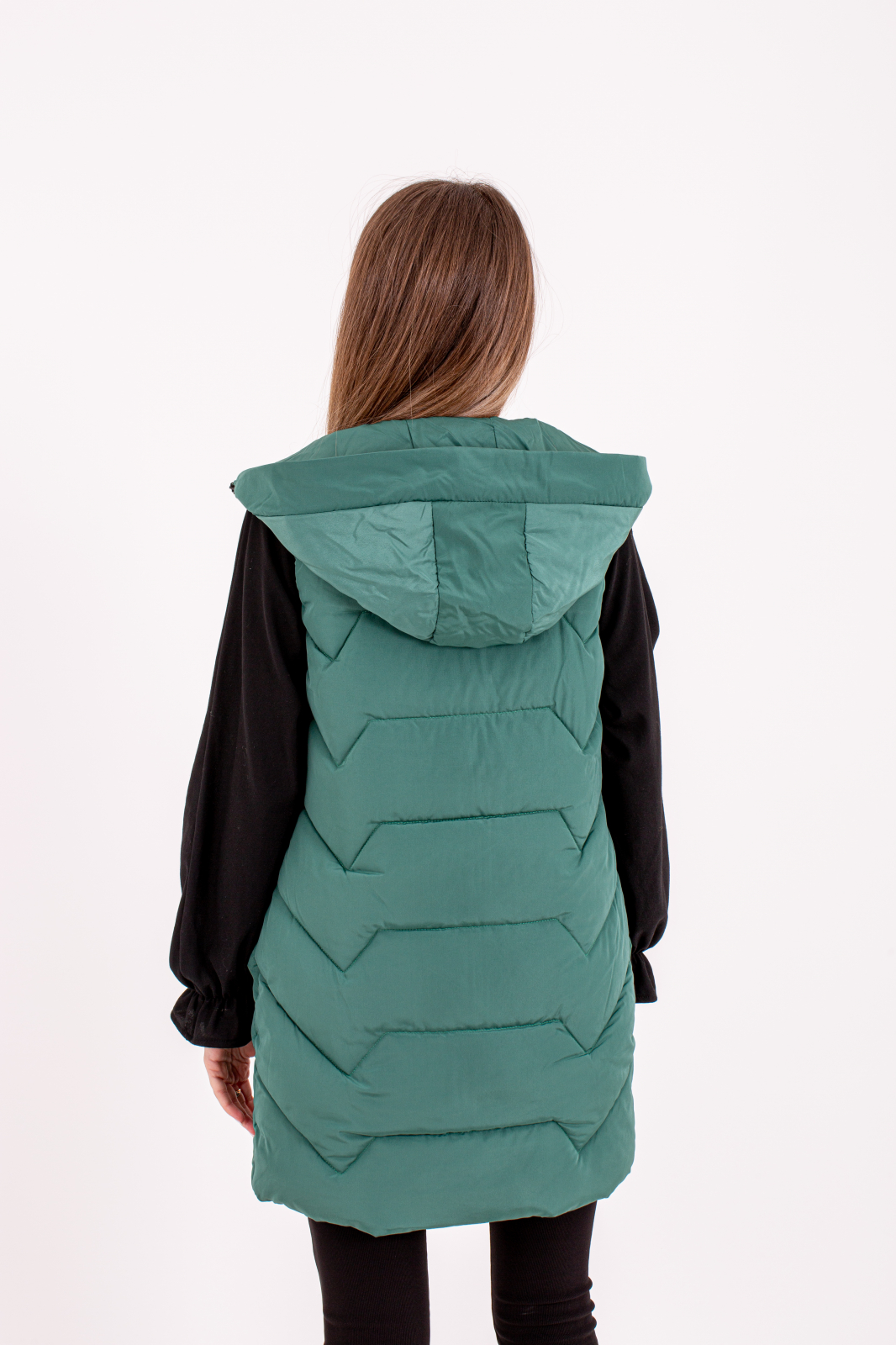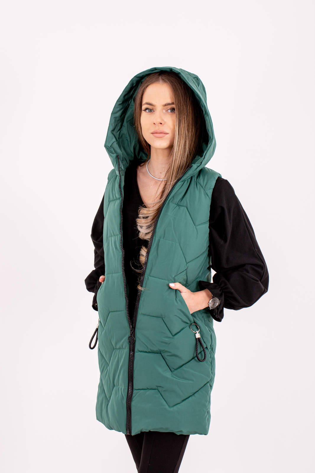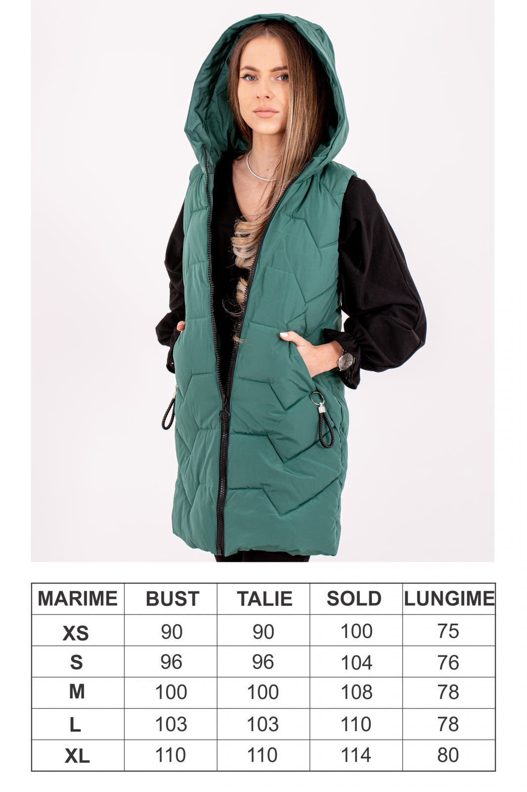 Vesta dama lungă cu glugă 808 îmbină confortul cu un design modern și practic.