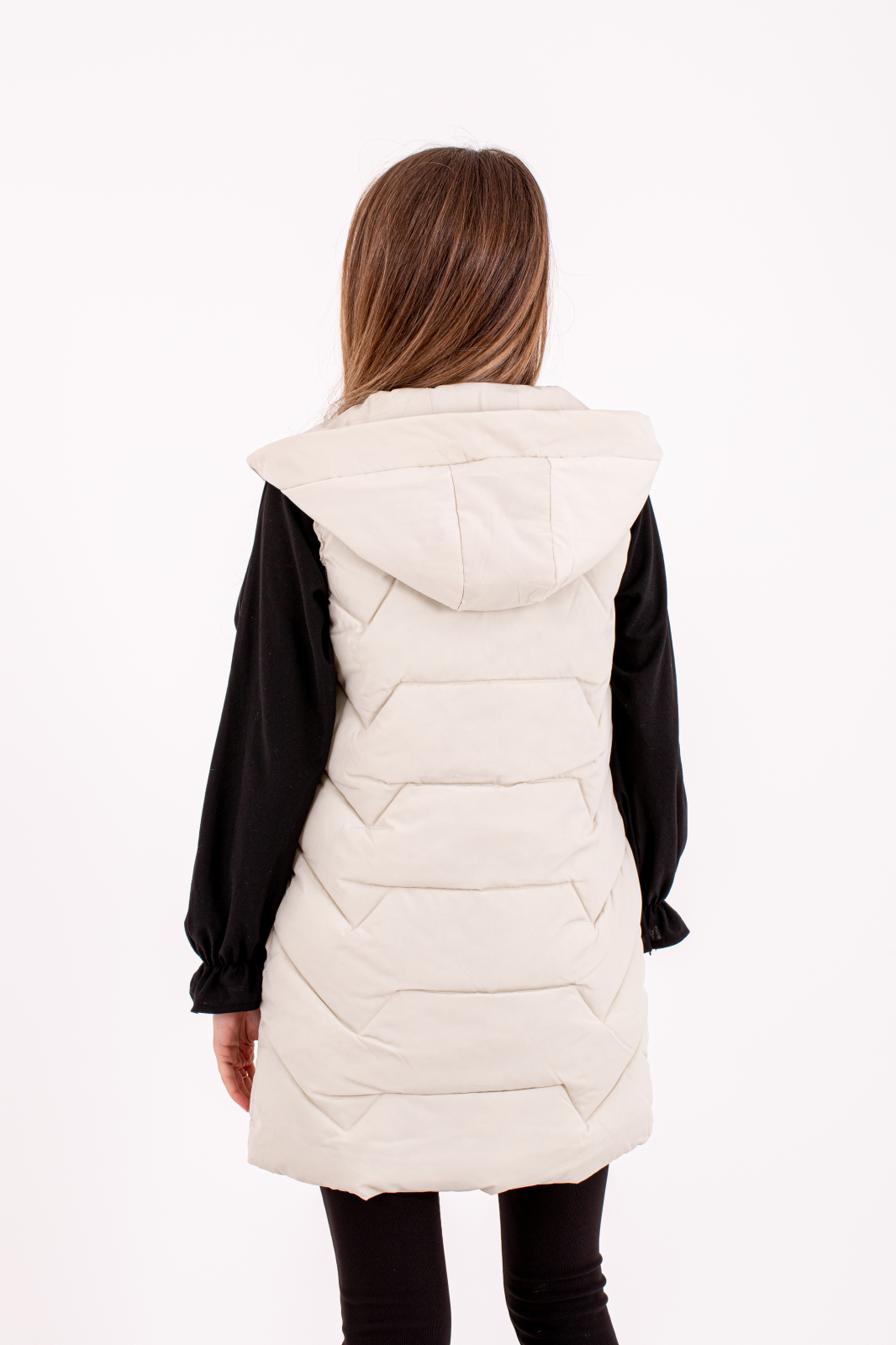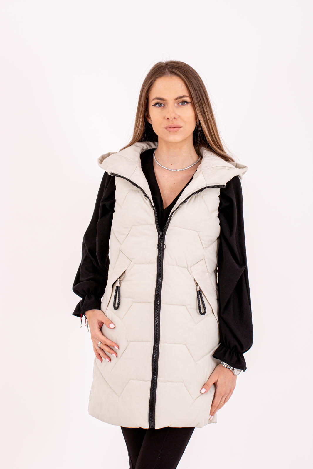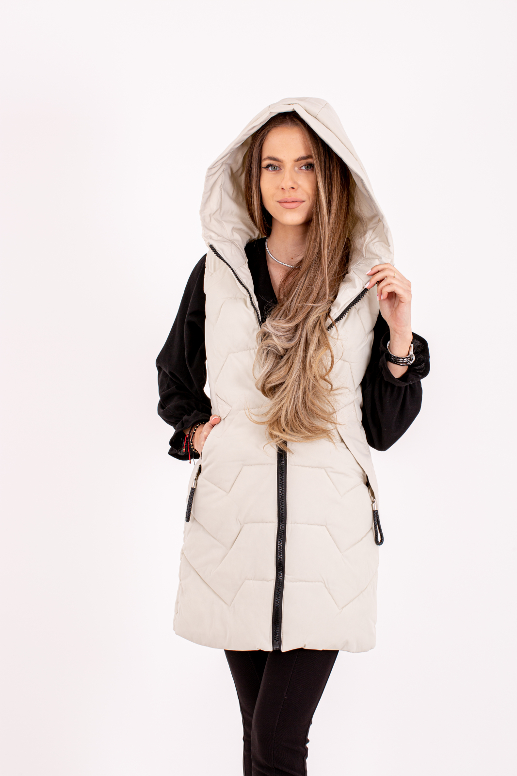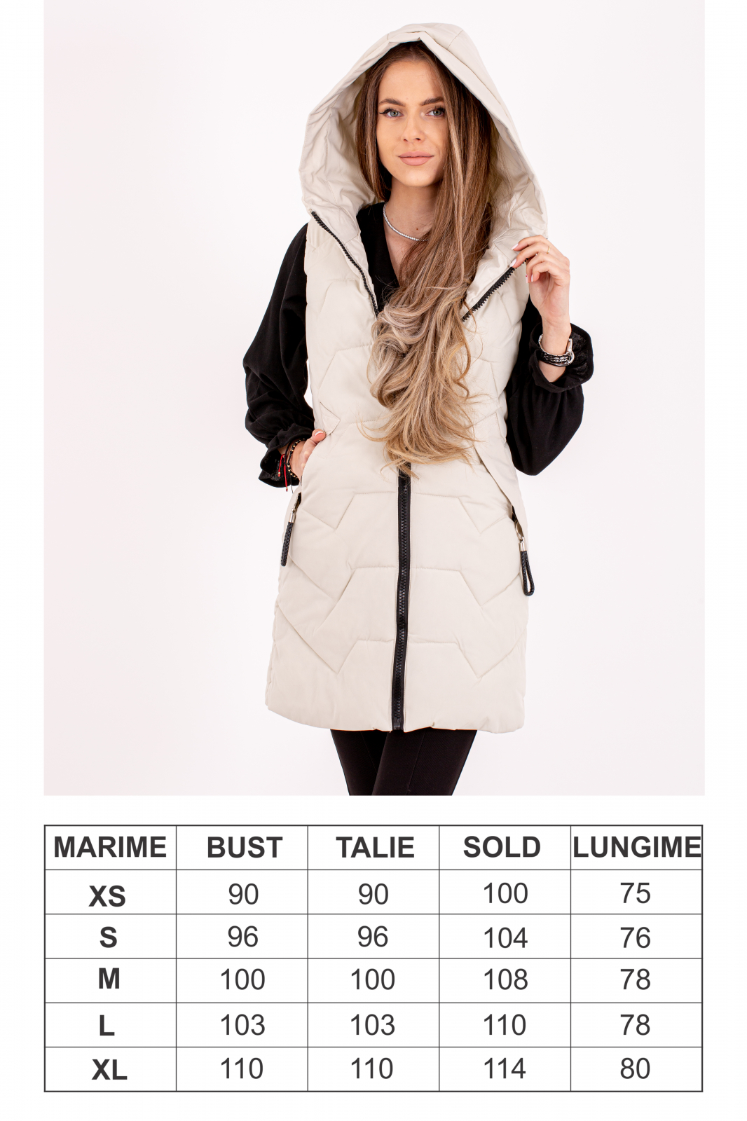 Vesta dama lungă cu glugă 808 îmbină confortul cu un design modern și practic.