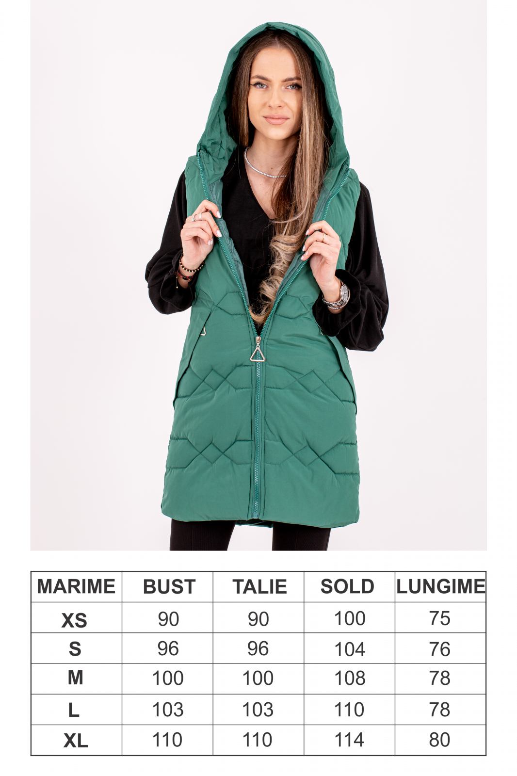 Vesta dama cu glugă 809 este alegerea perfectă pentru un stil practic și confortabil.