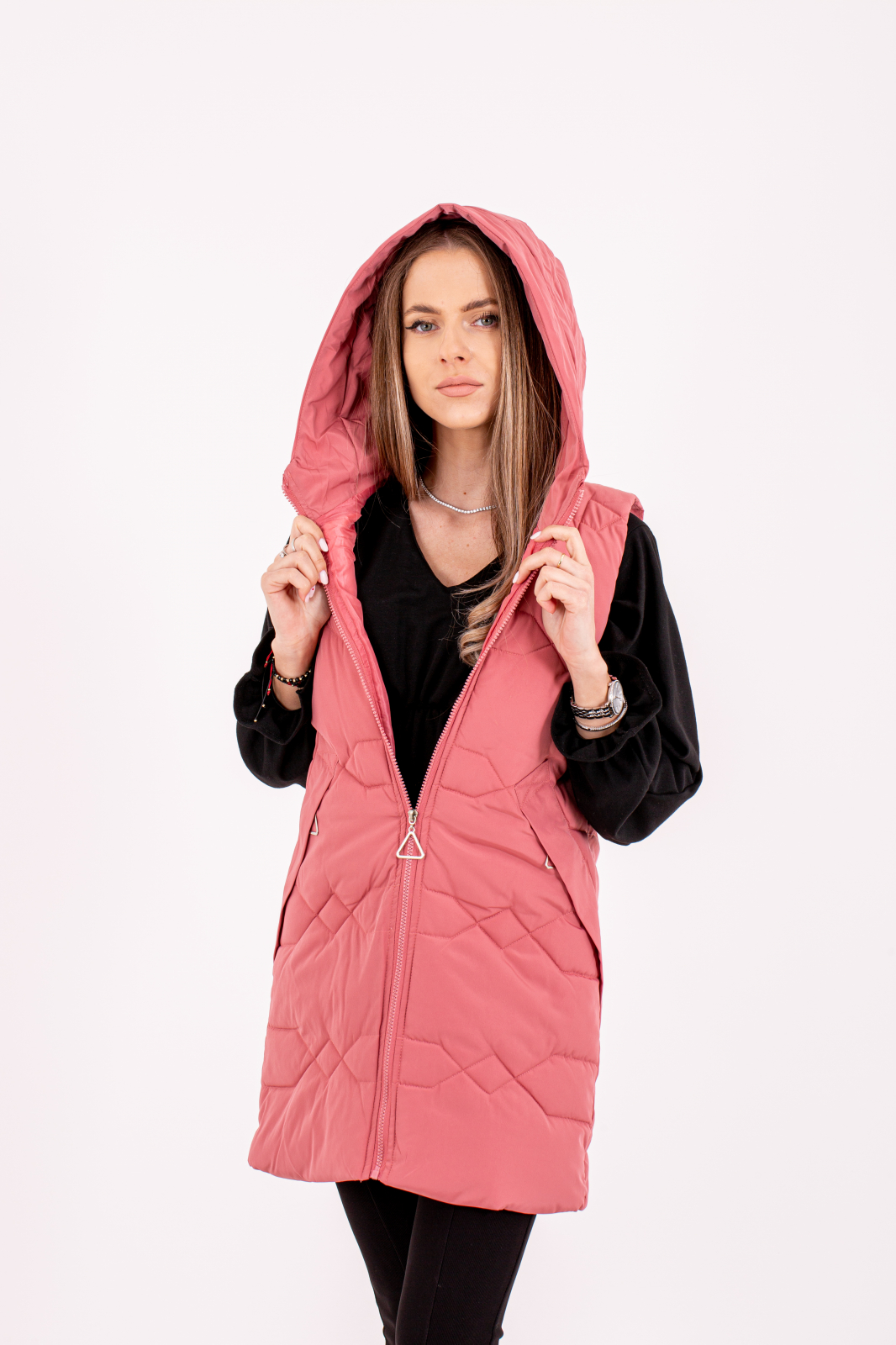 Vesta dama cu glugă 809 este alegerea perfectă pentru un stil practic și confortabil.