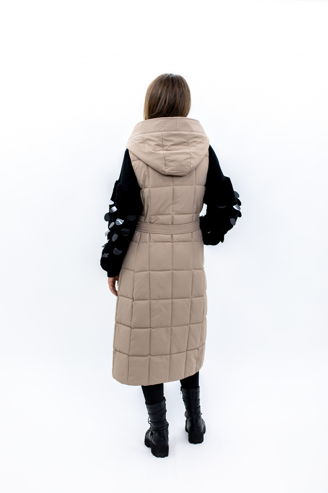 • Gluga nedetașabilă te protejează eficient, iar închiderea cu fermoar cu cursor dublu, ascuns sub o fenta cu capse, îți asigură un look elegant și funcțional.