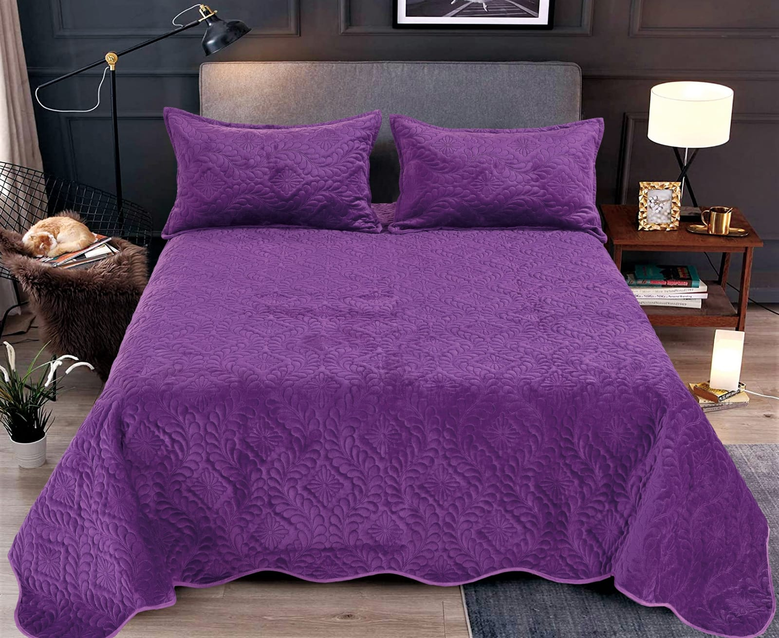 Set cuvertura pat matlasata, 3 piese, 220x240cm - Culoare MOV