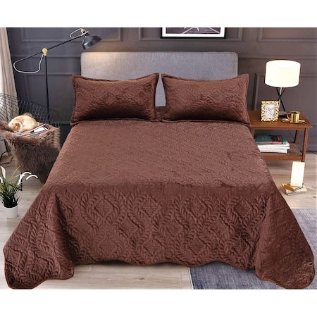 Set cuvertura pat matlasata, 3 piese, 220x240cm - Culoare Maro închis