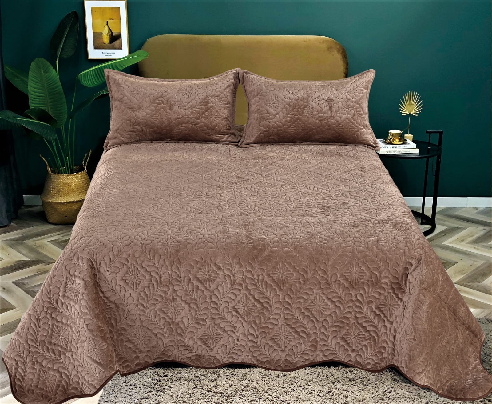 Set cuvertura pat matlasata, 3 piese, 220x240cm - Culoare Maro deschis