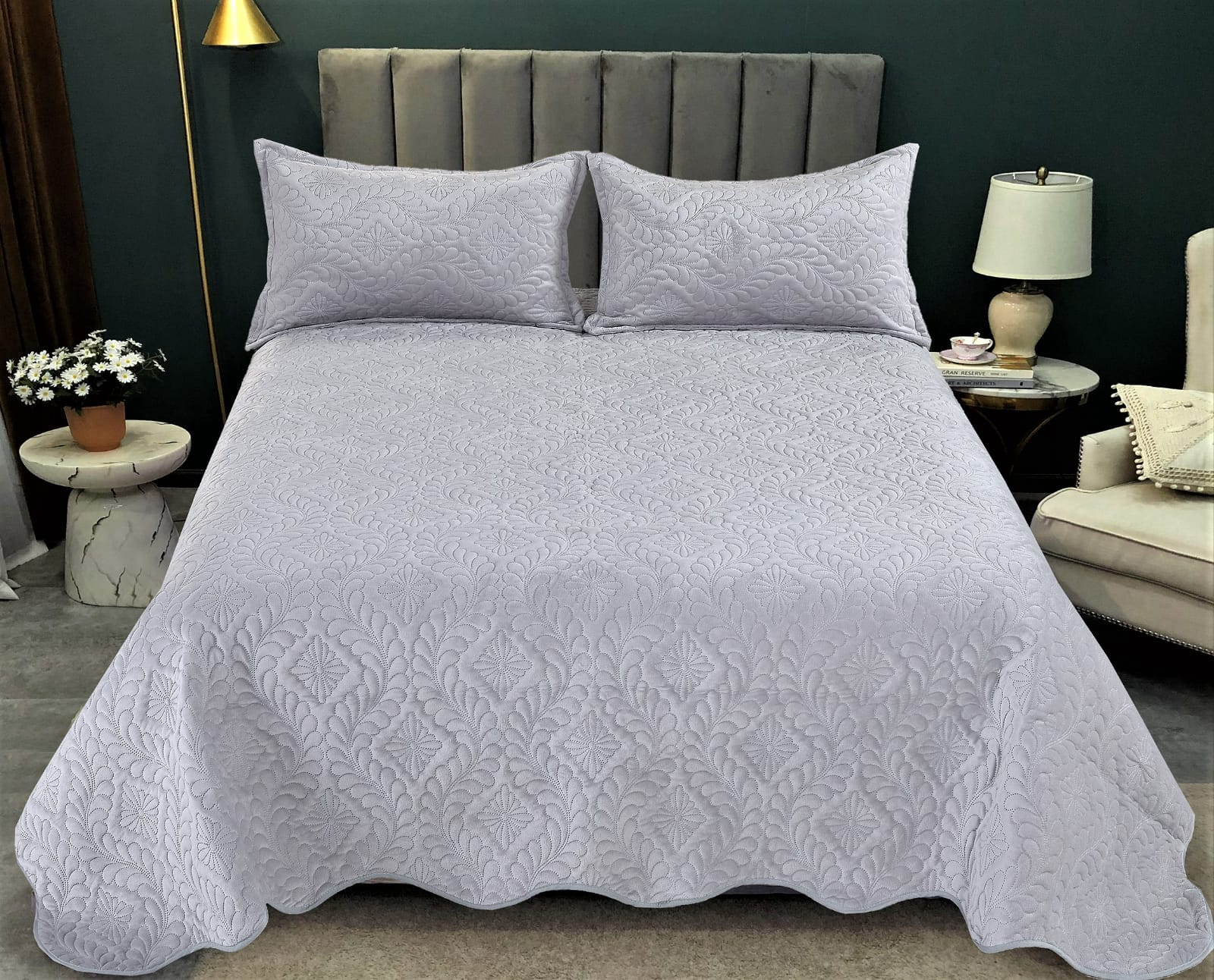Set cuvertura pat matlasata, 3 piese, 220x240cm - Culoare Gri argintiu
