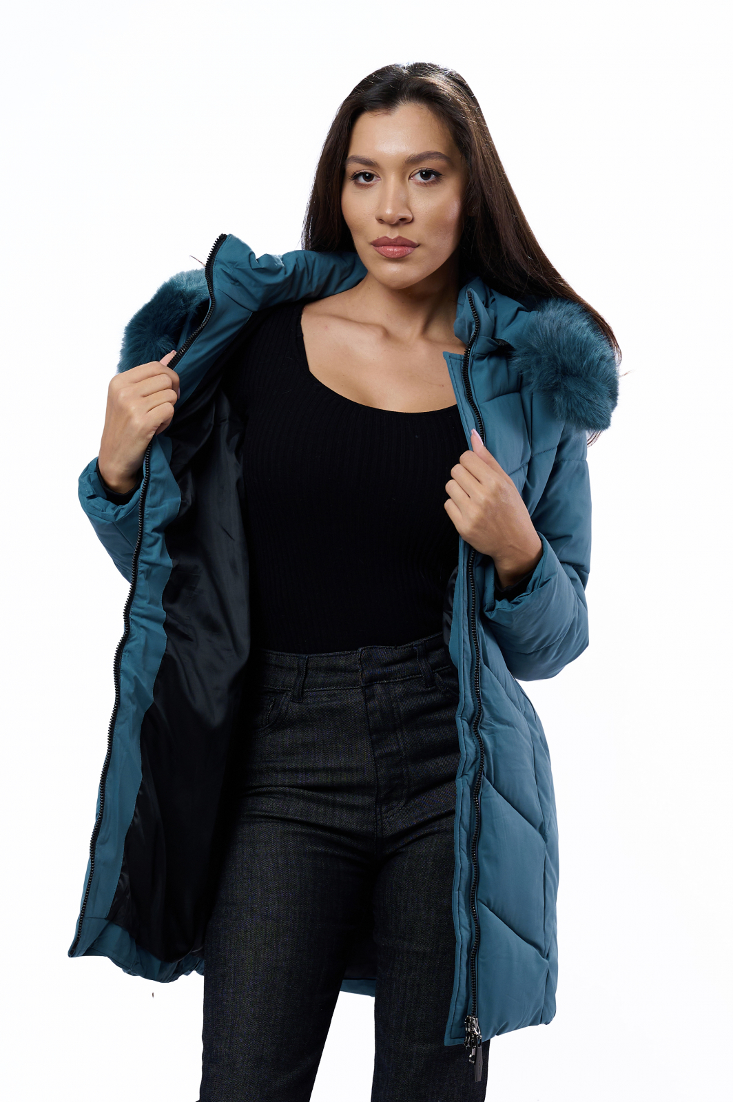 - Gluga și blana sintetică detasabile îți permit să îți personalizezi stilul, în timp ce fermoarul de înaltă calitate și manecile lungi cu mansete elastice asigură confortul necesar.