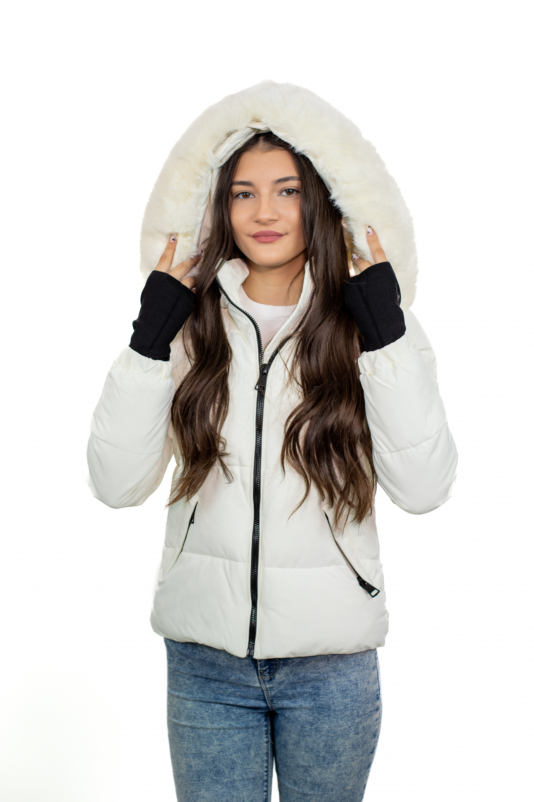 • Gluga și blana sintetică detasabilă îți permit să adaptezi geaca la condițiile meteo, iar închiderea cu fermoar asigură o fixare sigură și confortabilă.