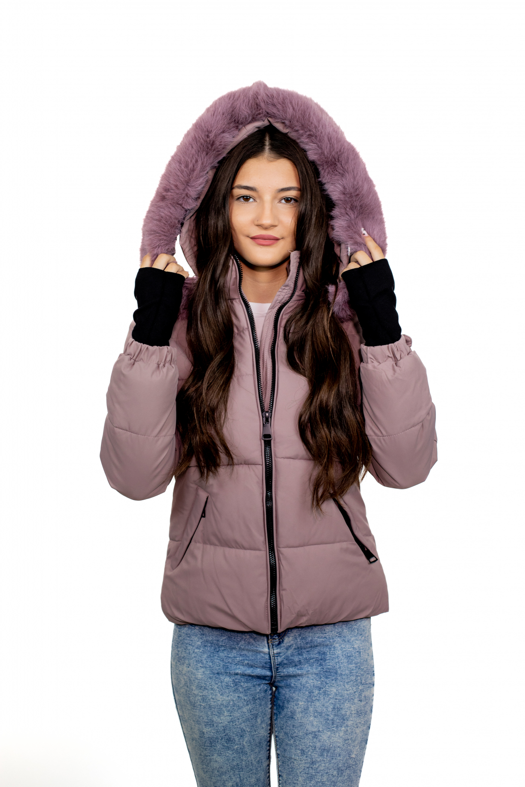 • Gluga și blana sintetică detasabilă îți permit să adaptezi geaca la condițiile meteo, iar închiderea cu fermoar asigură o fixare sigură și confortabilă.