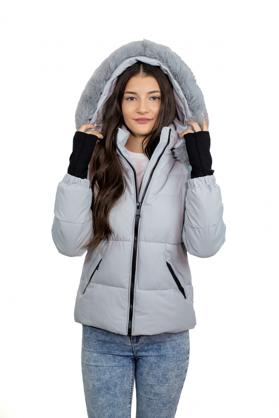 • Gluga și blana sintetică detasabilă îți permit să adaptezi geaca la condițiile meteo, iar închiderea cu fermoar asigură o fixare sigură și confortabilă.