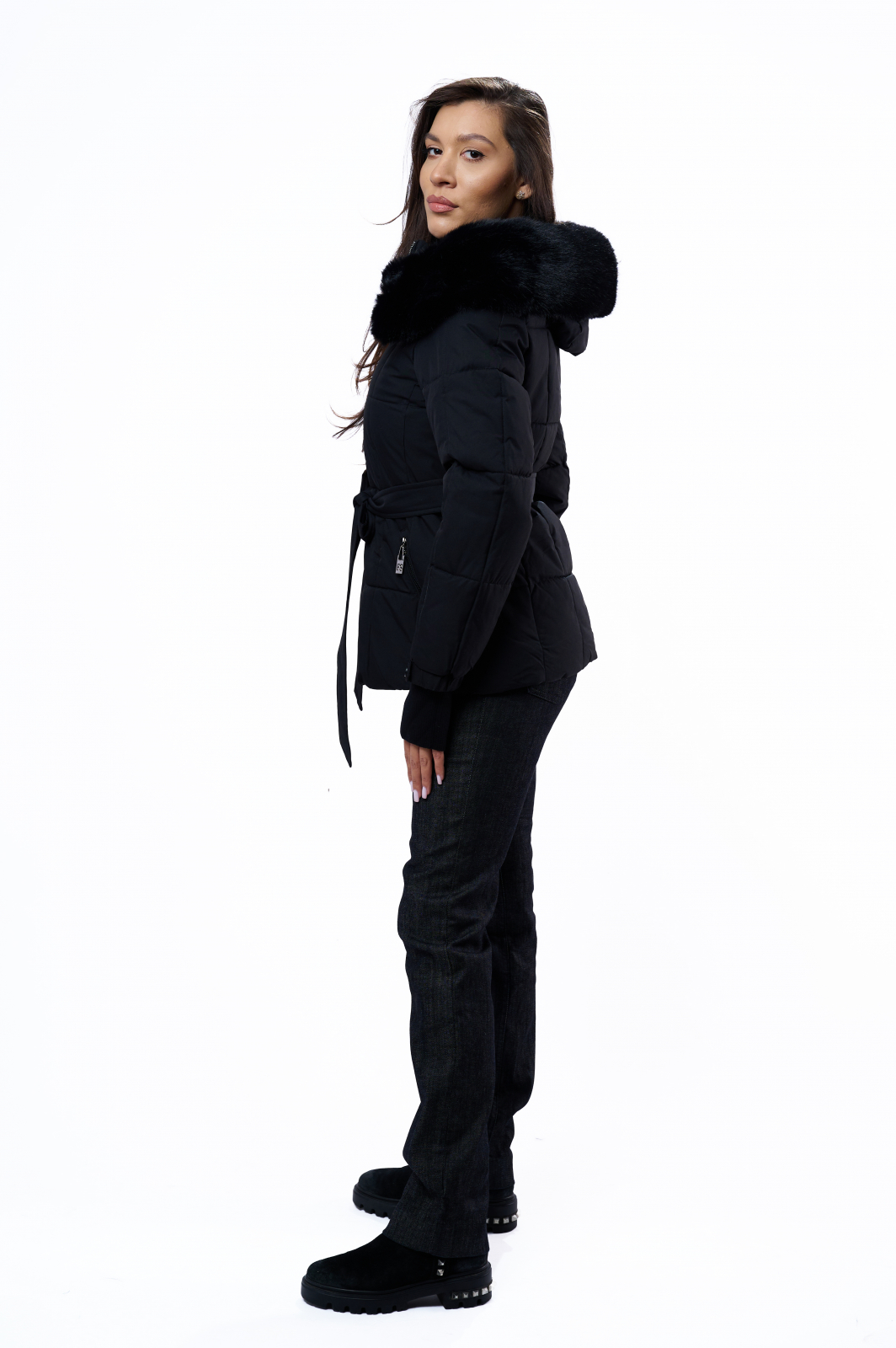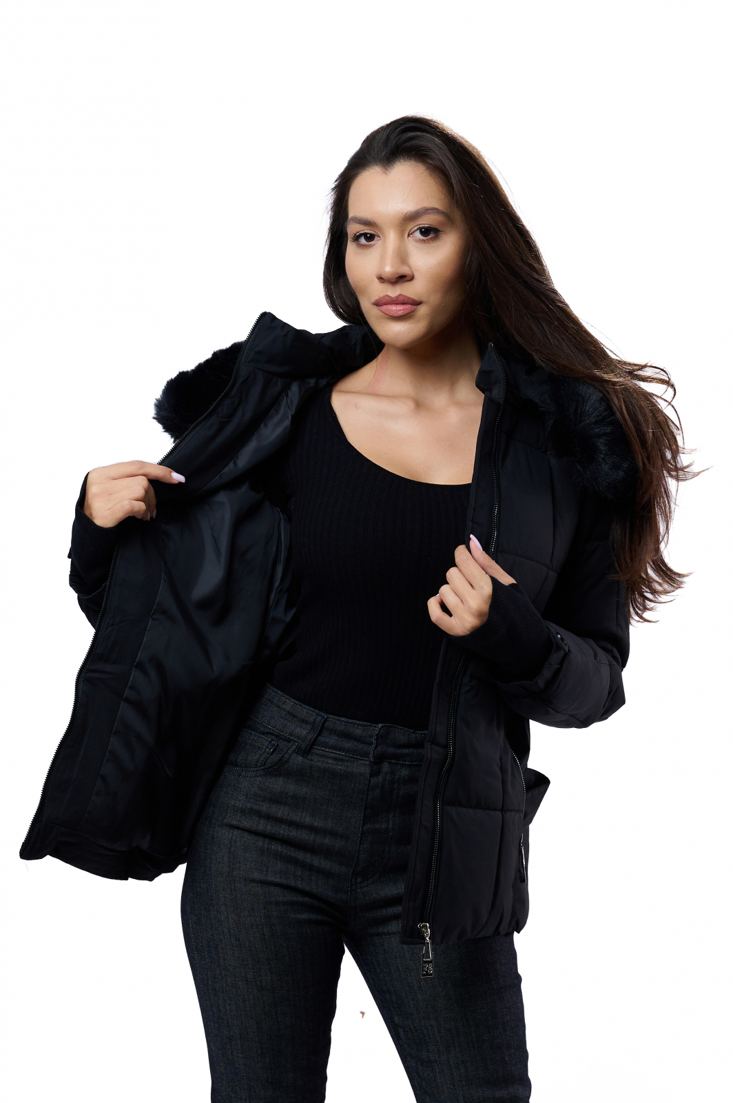 Geacă Dama cu glugă și blană sintetică 8616 – Eleganță și Confort pentru Sezonul Rece