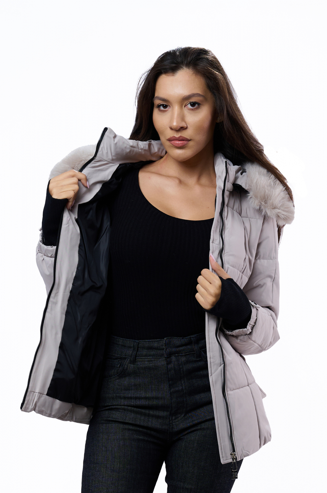 Geacă Dama cu glugă și blană sintetică 8616 – Eleganță și Confort pentru Sezonul Rece
