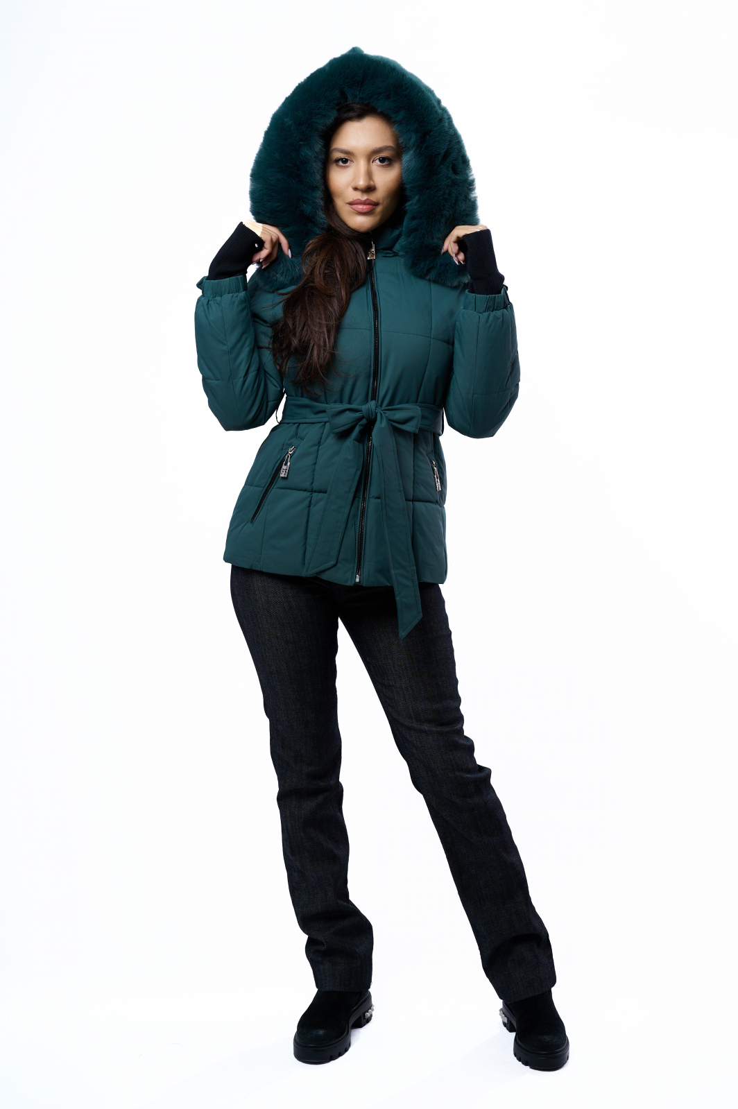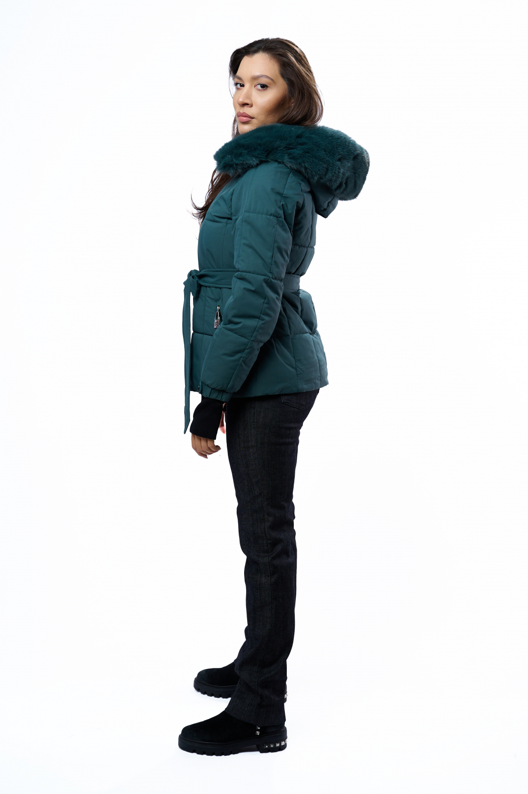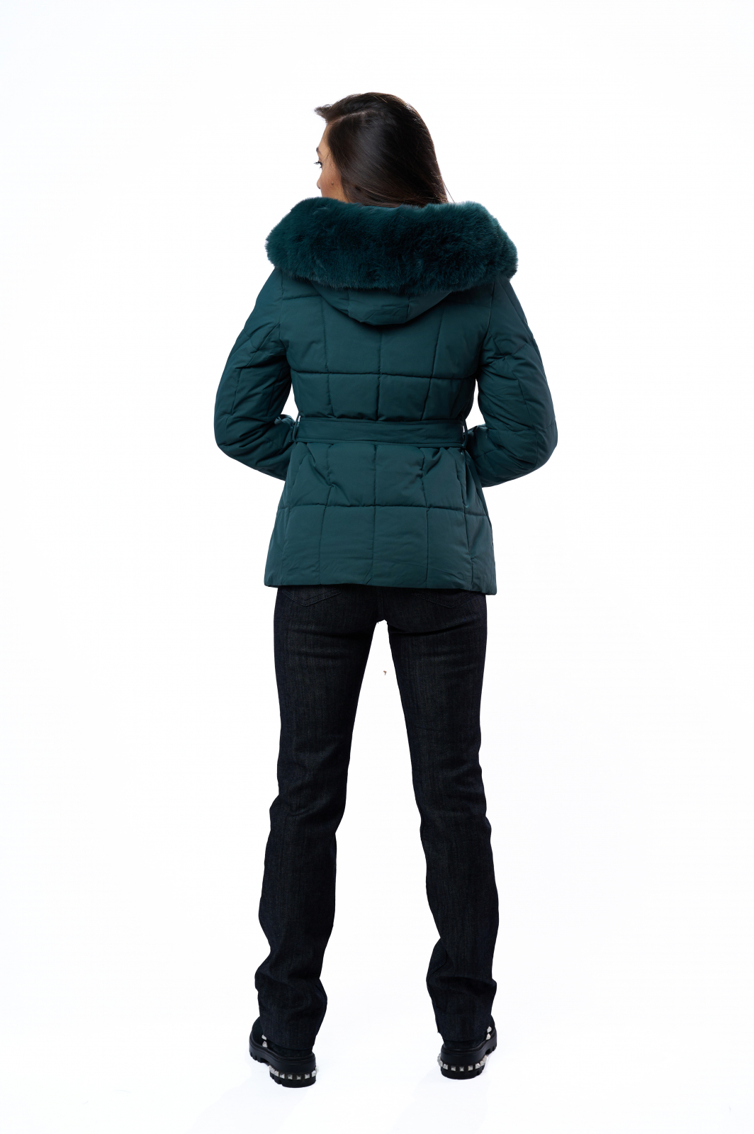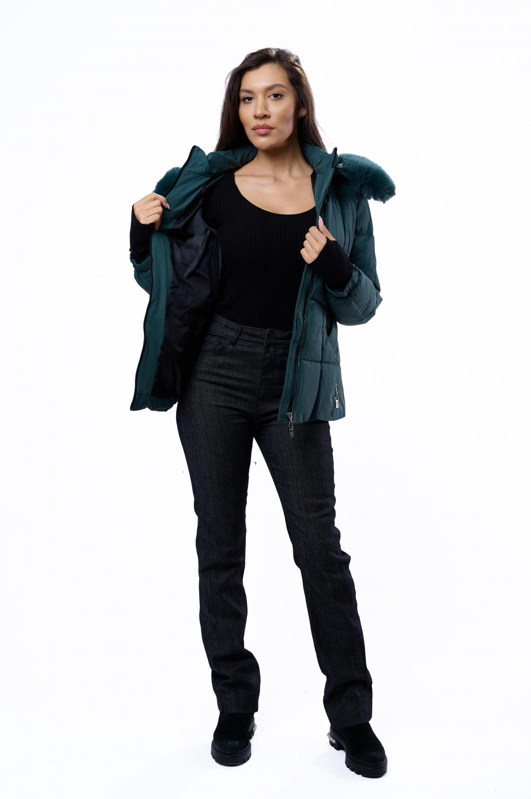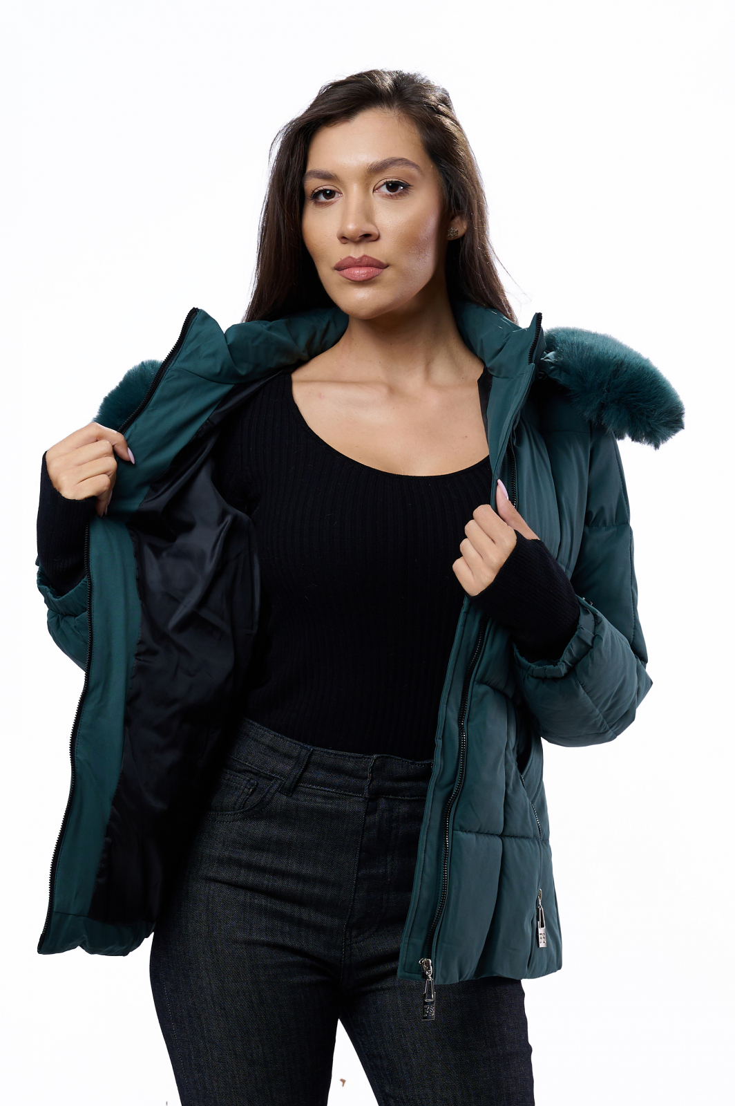 Geacă Dama cu glugă și blană sintetică 8616 – Eleganță și Confort pentru Sezonul Rece