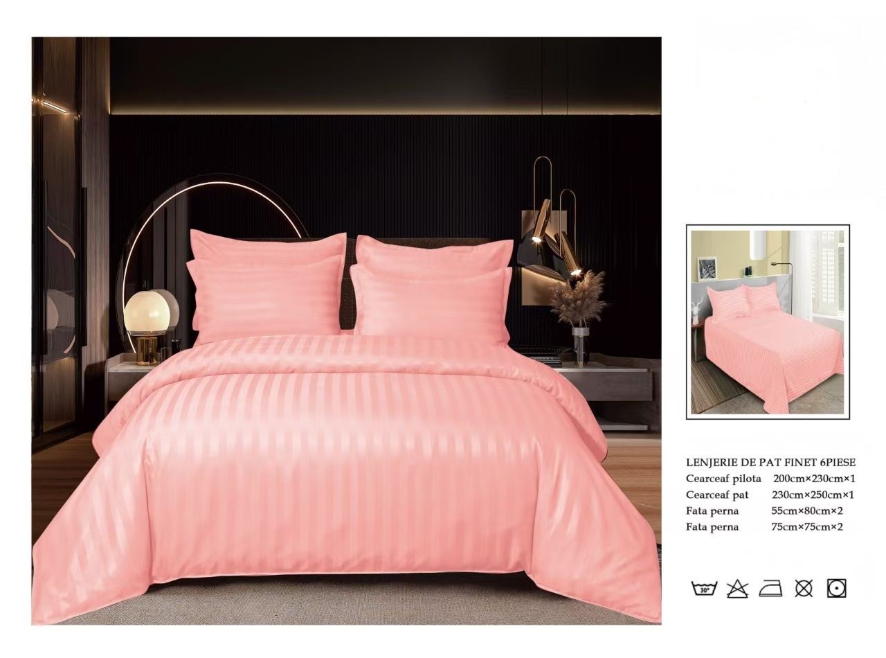 Lenjerie de pat dublu uni, Finet, 6 piese, Somon
