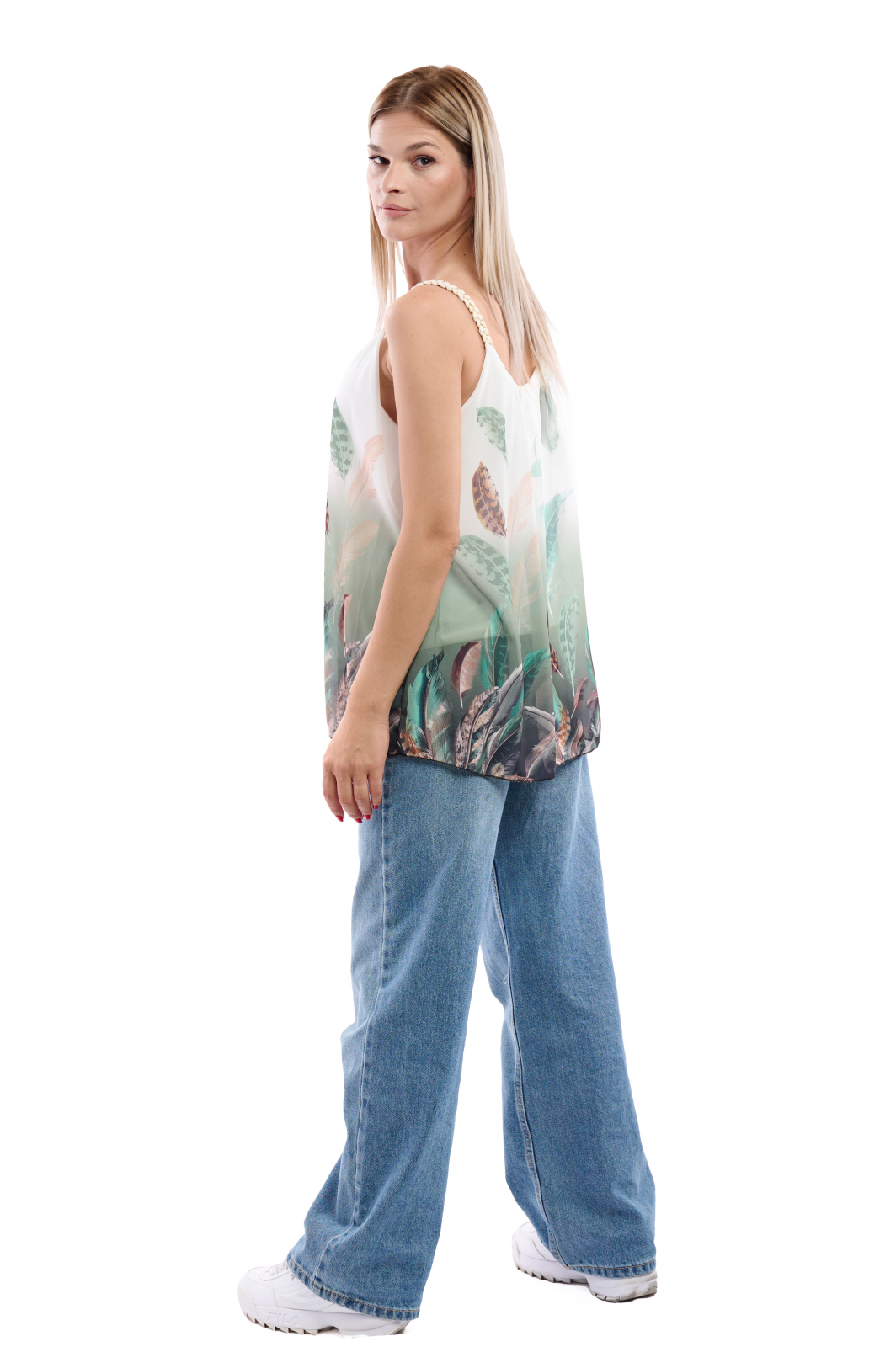 • Bretelele subțiri împletite și decolteul rotund îl fac ușor de asortat, fiind potrivit pentru orice combinație vestimentară.