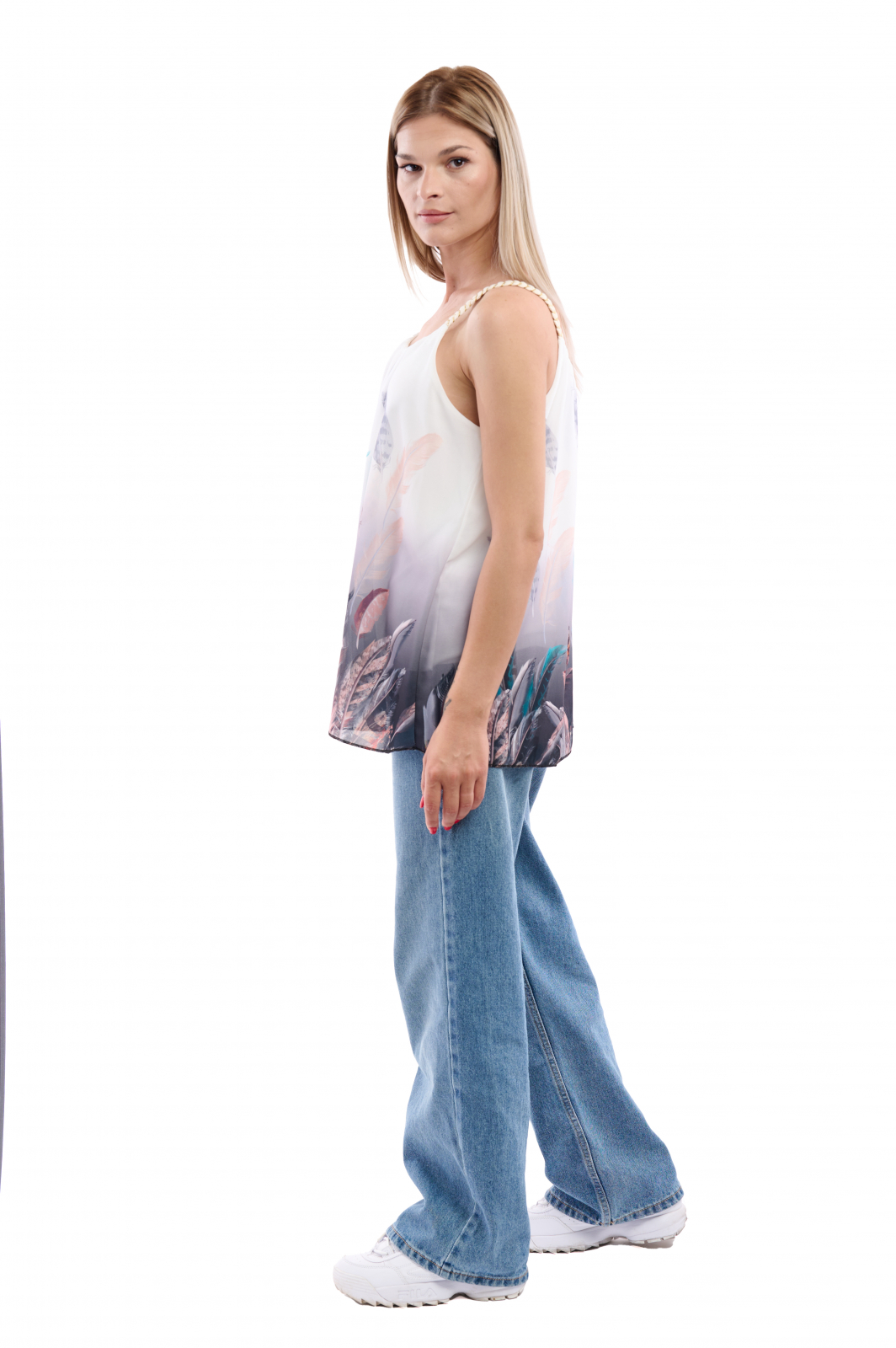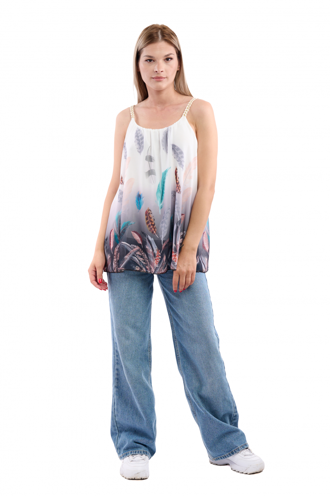 • Bretelele subțiri împletite și decolteul rotund îl fac ușor de asortat, fiind potrivit pentru orice combinație vestimentară.