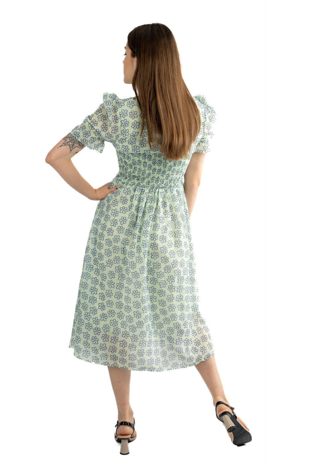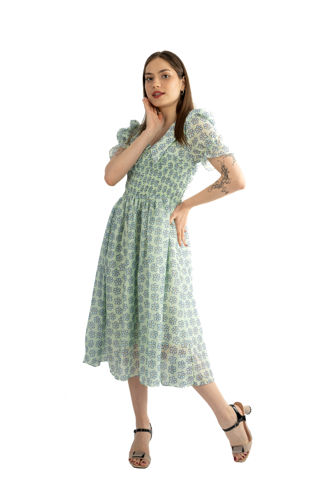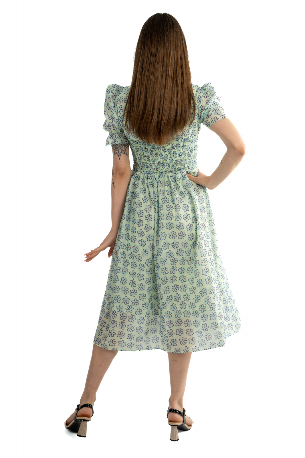 - Această rochie cu maneci scurte și elastic la terminatie îți va pune în valoare silueta, în timp ce elasticul din talie tip corset oferă un fit impecabil.