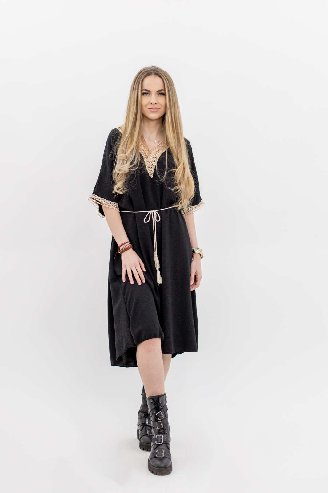 • Decolteul și manecile sunt decorate cu broderie delicată, aducând un plus de rafinament și unicitate rochiei.